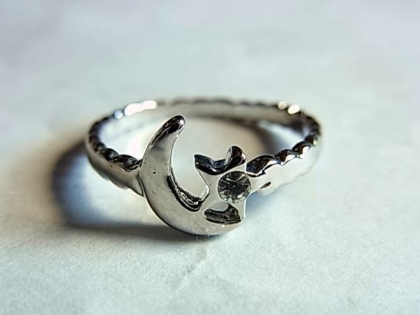 未使用品です。ノーブランドのリング(指輪)です。サイズは約9.5号です。三日月と星のデザインにキュービックジルコニア(人工ダイヤCZ)が1粒埋め込まれています。素材はシルバーとの事で購入しましたが刻印がありませんので素材は不明です。色はシルバー色です。男性(メンズ)ならピンキーリングに良いと思います。以前新品で購入し保管していただけの商品です。最初から小キズやくすみや変色等はあります。付属品はありません。落札後の質問には一切回答しませんので、必ず落札前に不明な点は質問し不明な点を解消してから入札及び落札して下さい。