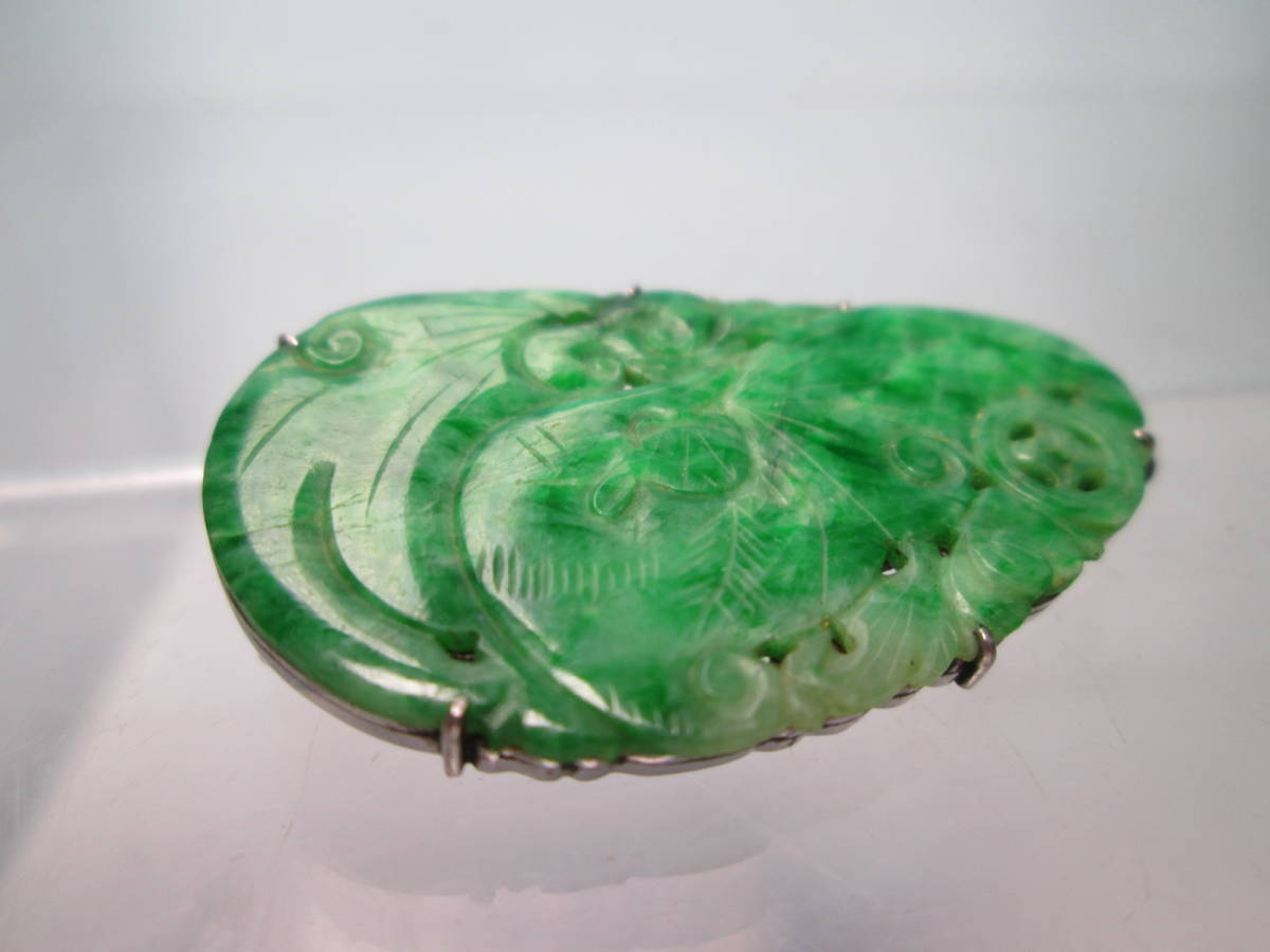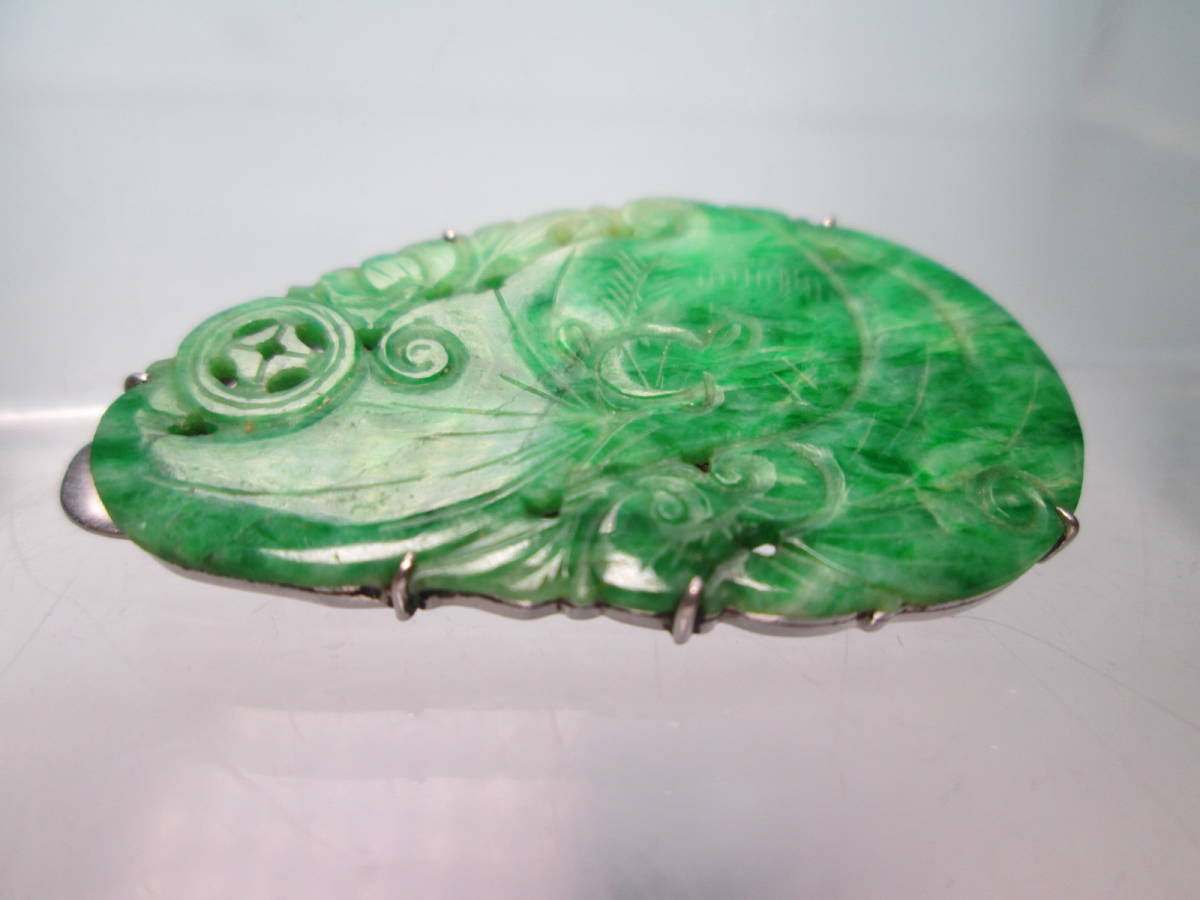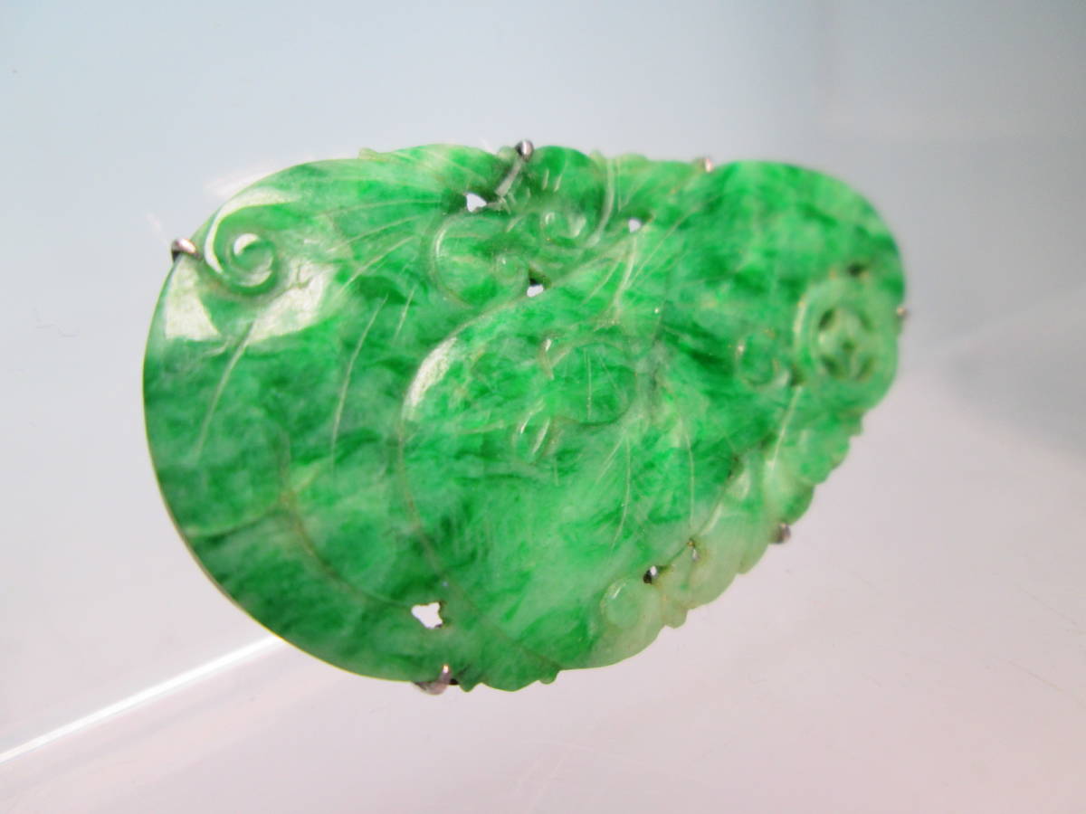 【江月】アンティーク・上質な本翡翠 透かし彫刻の髪飾り 6,12g 髪留め