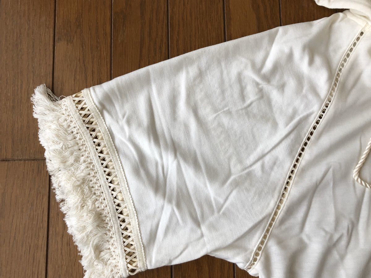 左袖口編み込み部分、2ヶ所にテープの外れがあります。