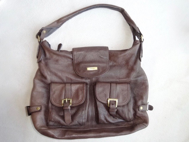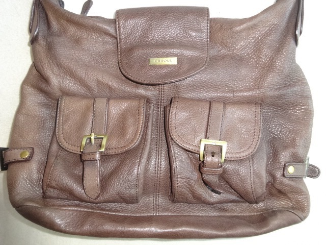 ● 日本未入荷 CAROLL キャロル フランス ショルダーバッグ ハンドバッグ レザー 革 ブラウン ポケット 通勤 たくさんの収納
