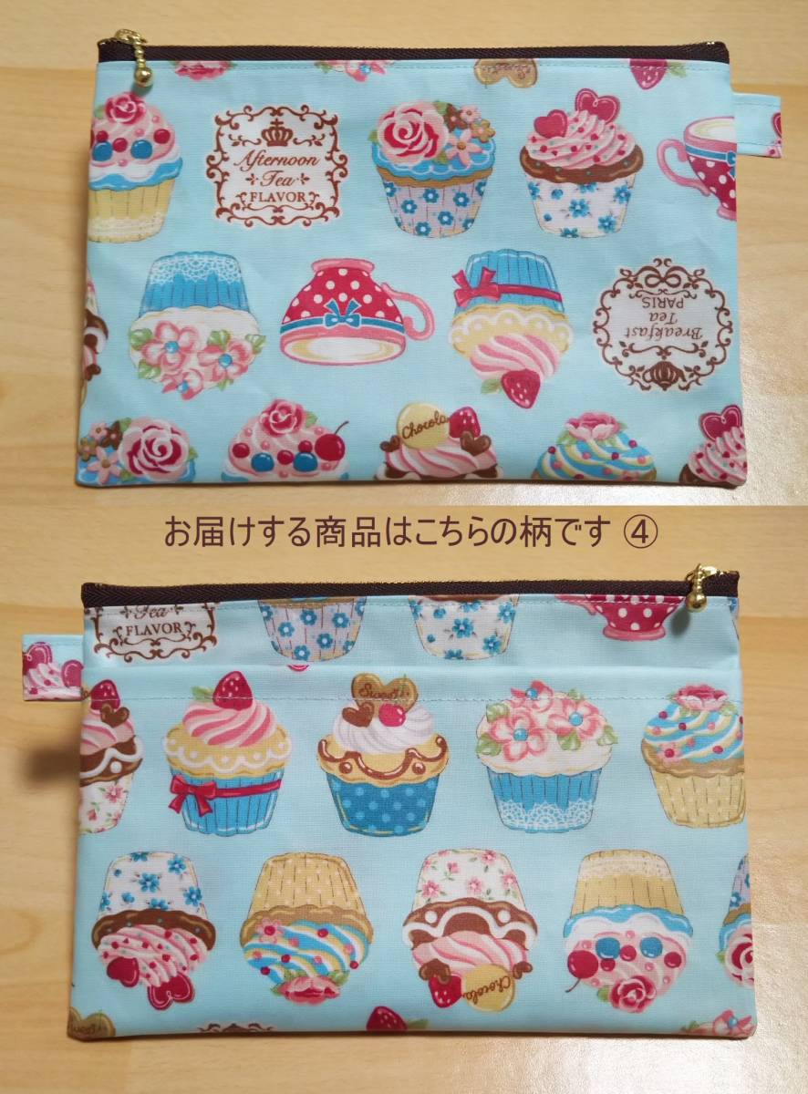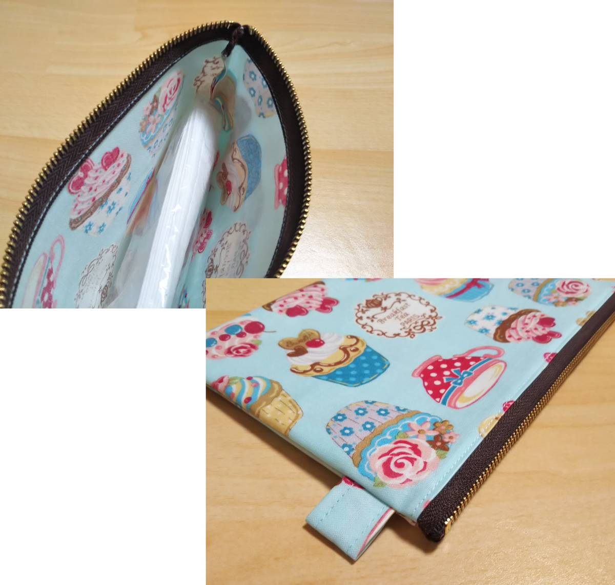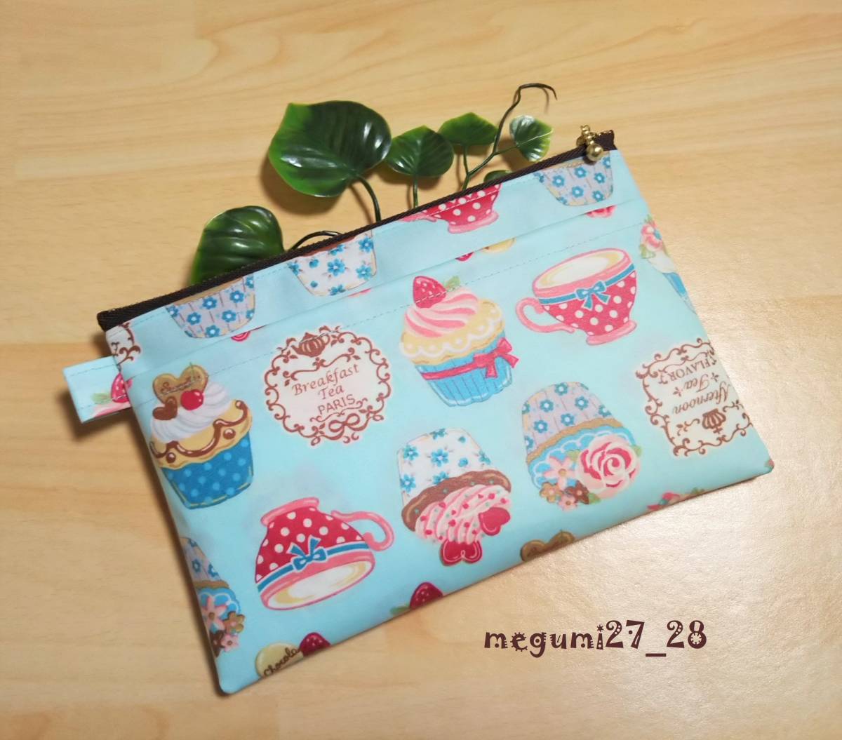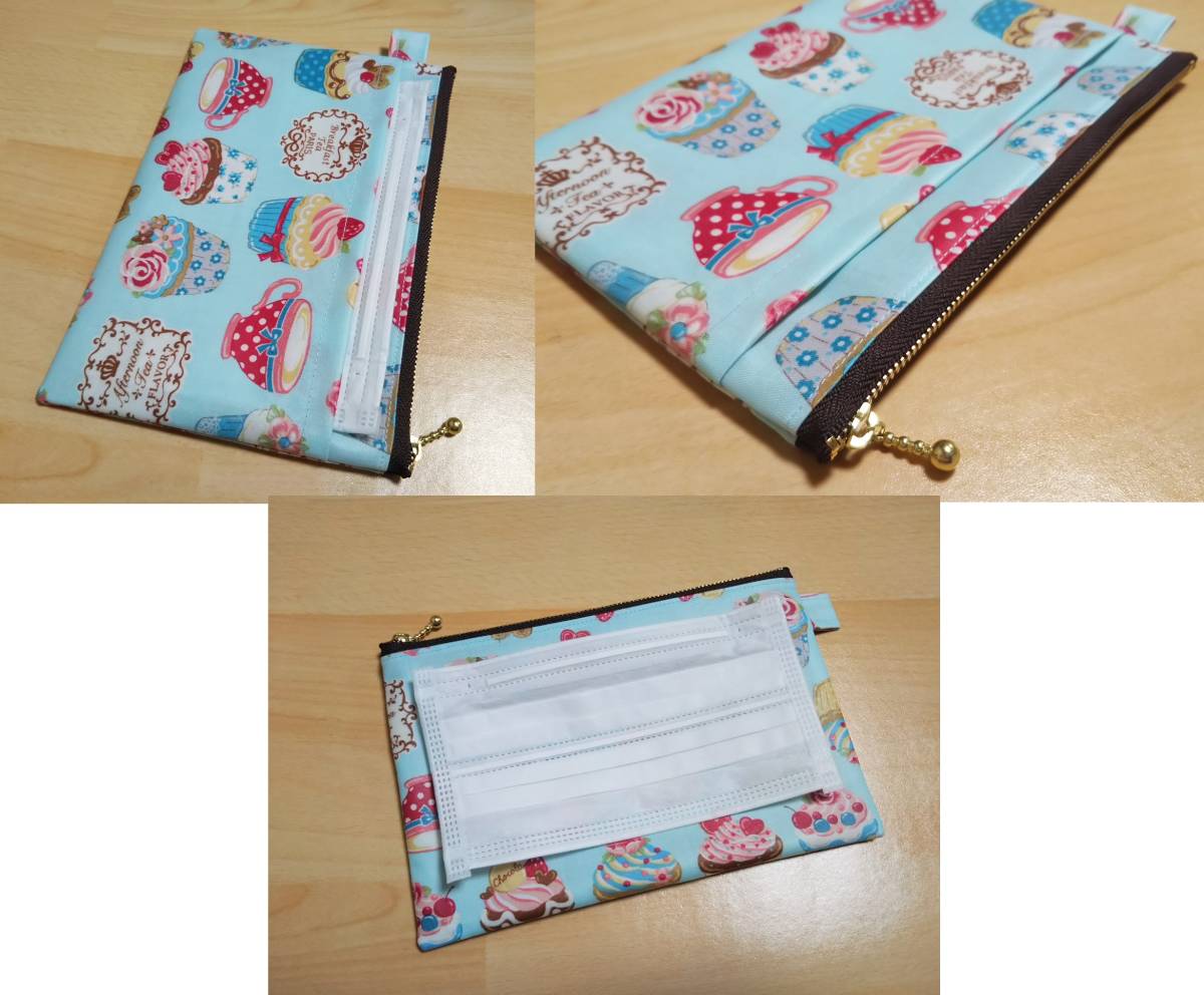 <マスクケース>ミニョンケーキ柄アイスブルー★ポケット付き♪マスクポーチ♪ラミネート加工♪ハンドメイド