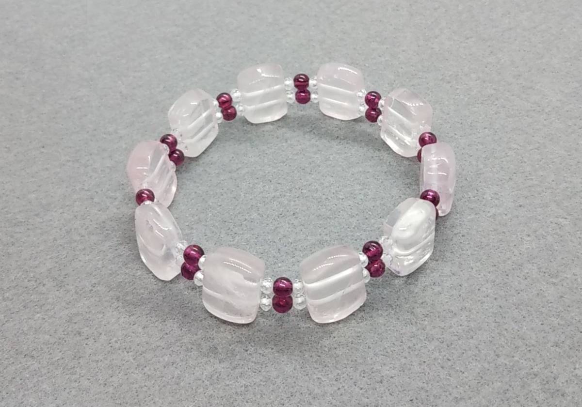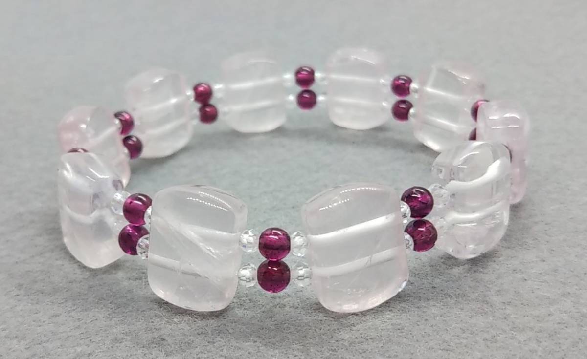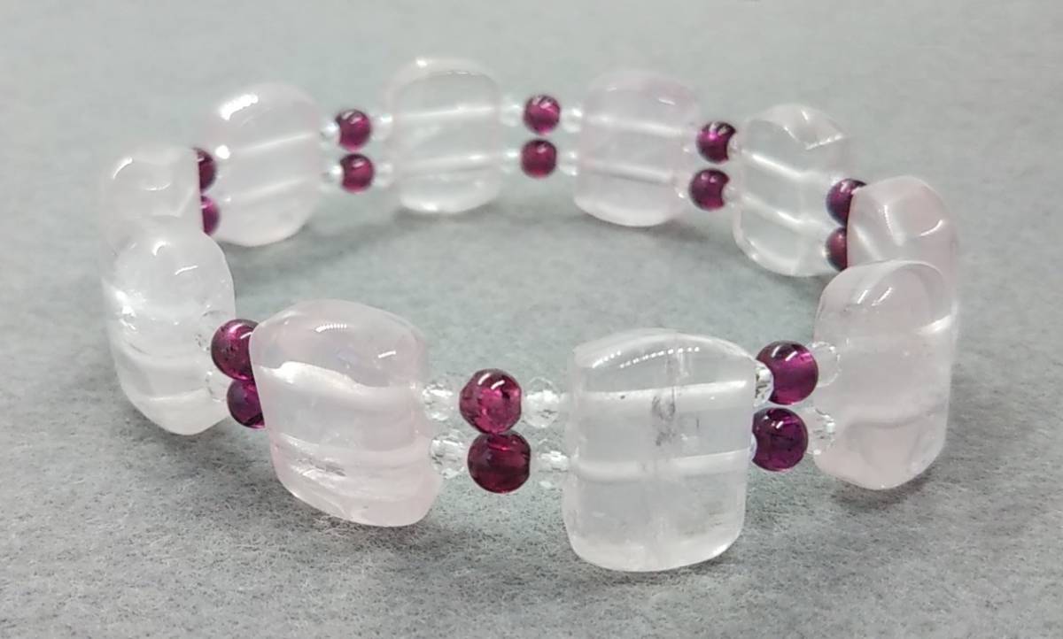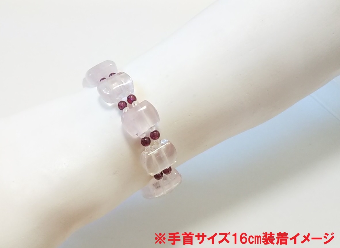 天然石ブレスレット ローズクォーツ ロードライトガーネット 水晶 16㎝ ハンドメイド b213
