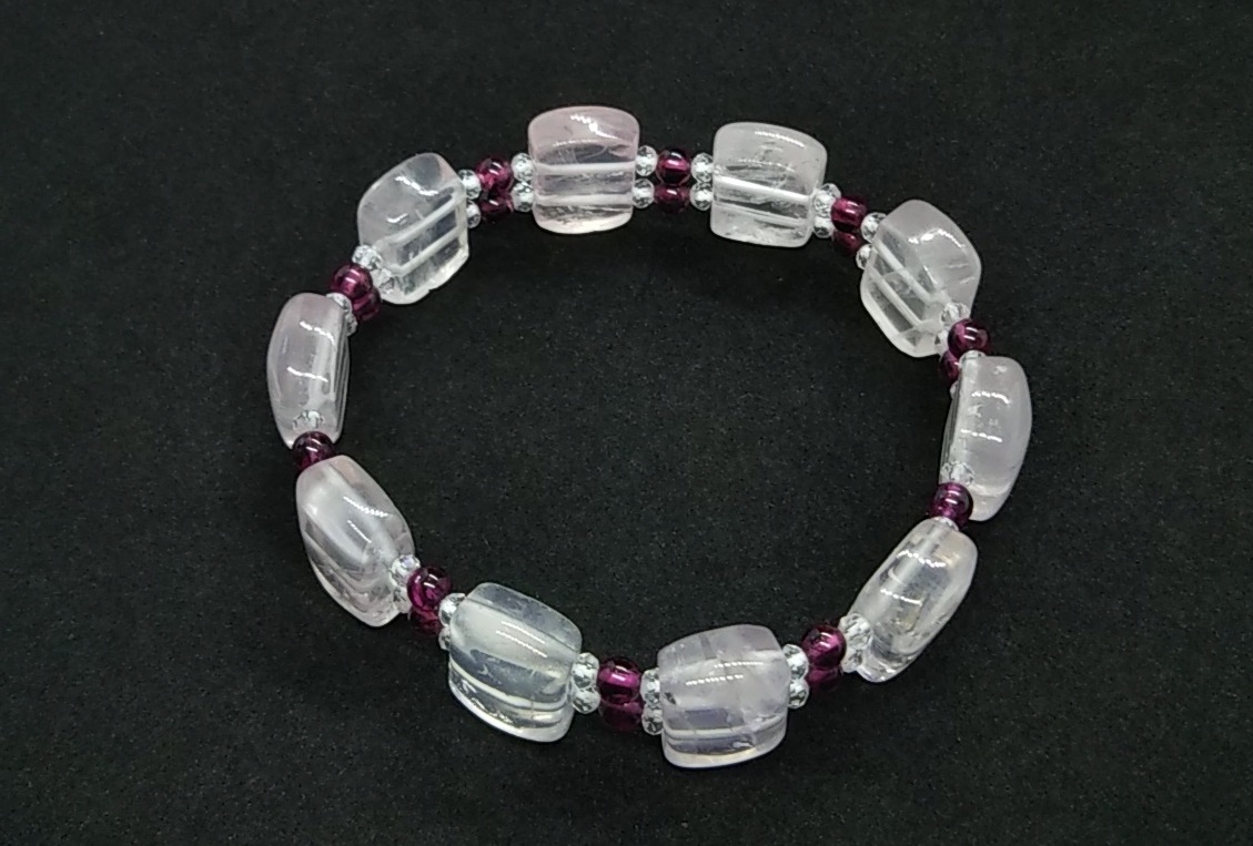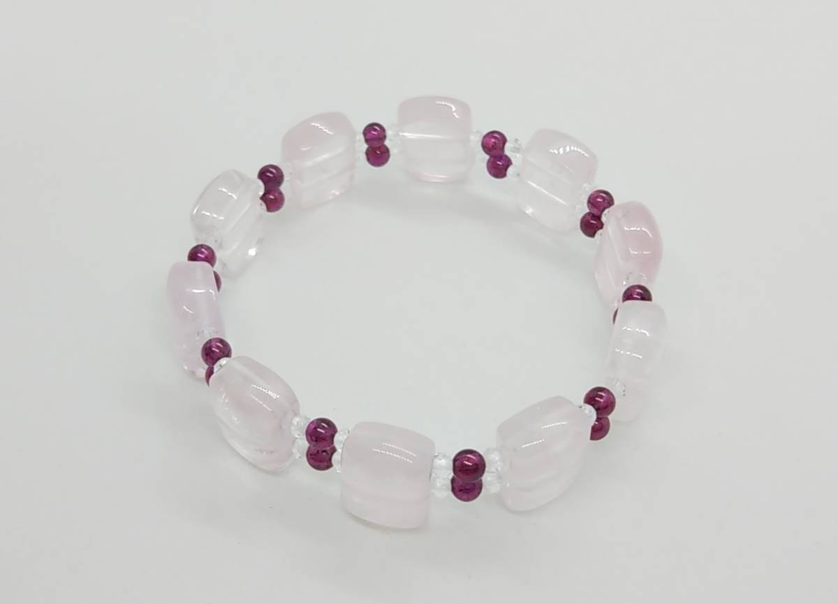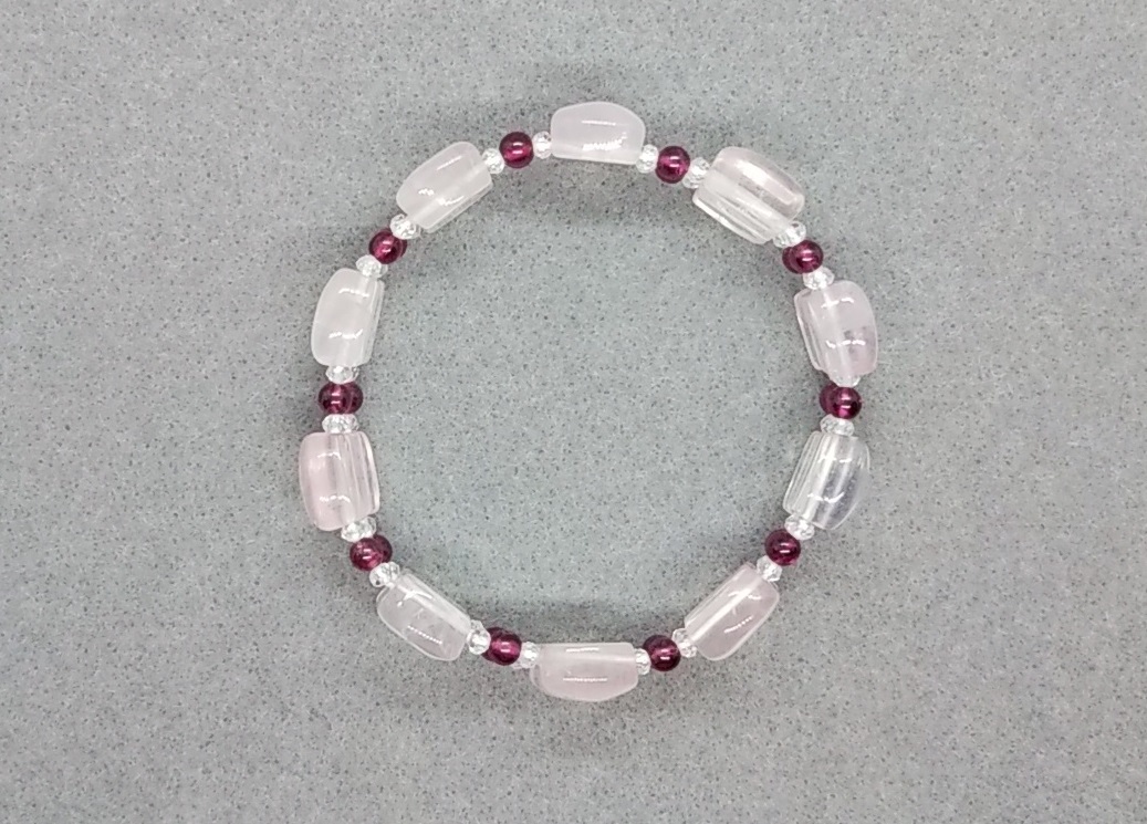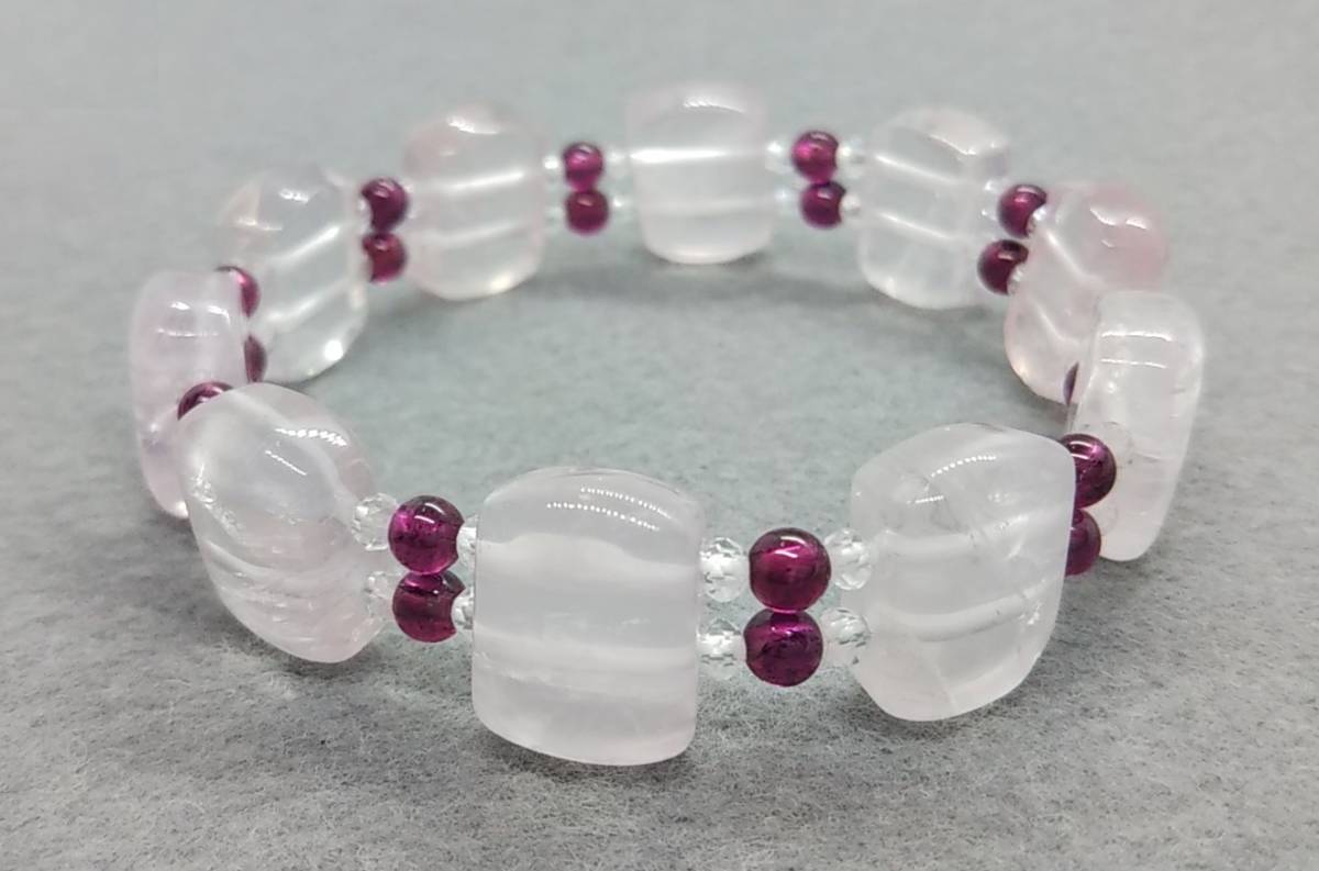 天然石ブレスレット ローズクォーツ ロードライトガーネット 水晶 16㎝ ハンドメイド b213