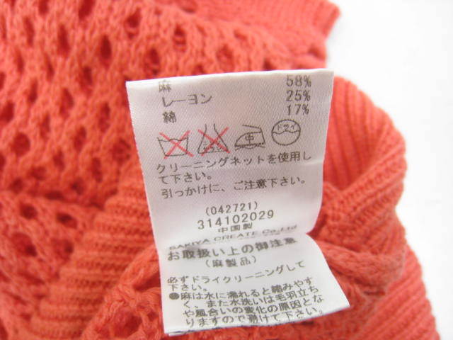 ■ブランド・商品名:LADY LUCK LUCA レディラックルカ リネン 半袖 ネット編み ニット コーラル オレンジ