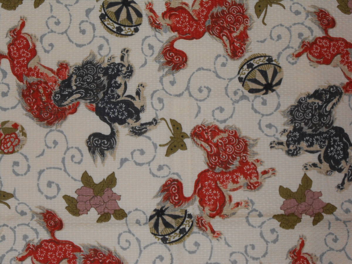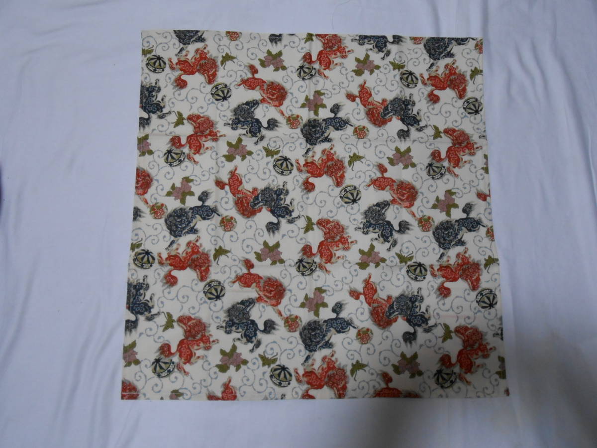 手作り、綿100%、52㎝の風呂敷、唐獅子と手まり、生成り