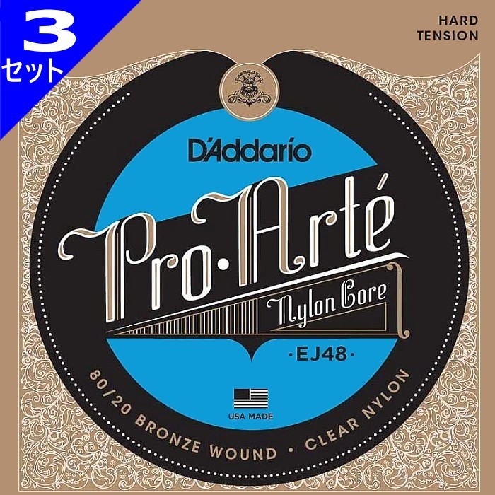 3セット D'Addario EJ48 Pro Arte Nylon Bronze/Clear Hard ダダリオ クラシック弦