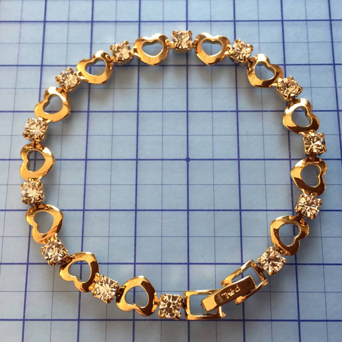 美品 Private Label P*L刻印 ラインストーン ゴールド ハート ブレスレット No.4797