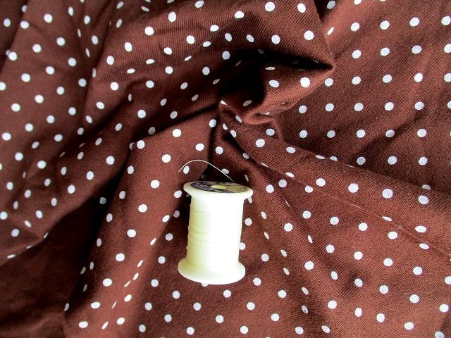 | ◆チョコ茶×オフ白プチドット水玉ニット生地☆175cm広巾 | |||