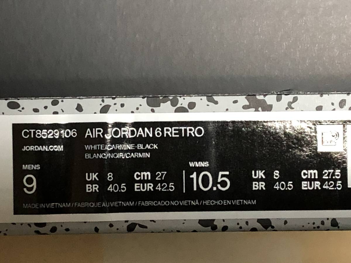 【27cm】 us9 NIKE AIR JORDAN 6 RETRO カーマイン 2021 ナイキエアジョーダン 6 レトロ