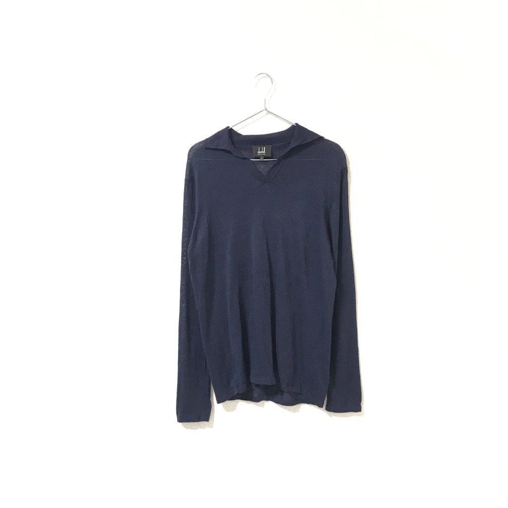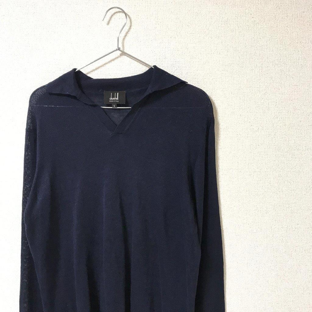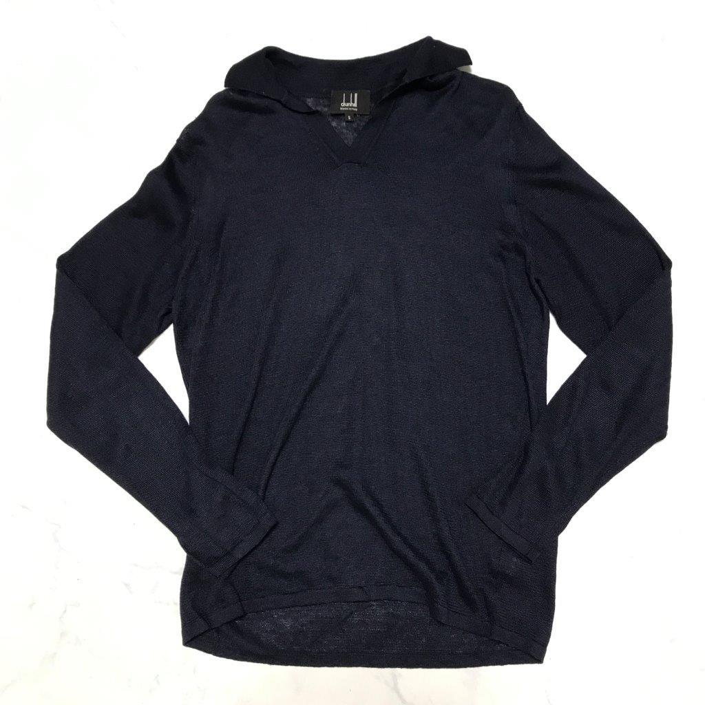 イタリア製★dunhill ダンヒル★メンズ 襟付き 長袖 ニット セーター ネイビー size S 管:B:02