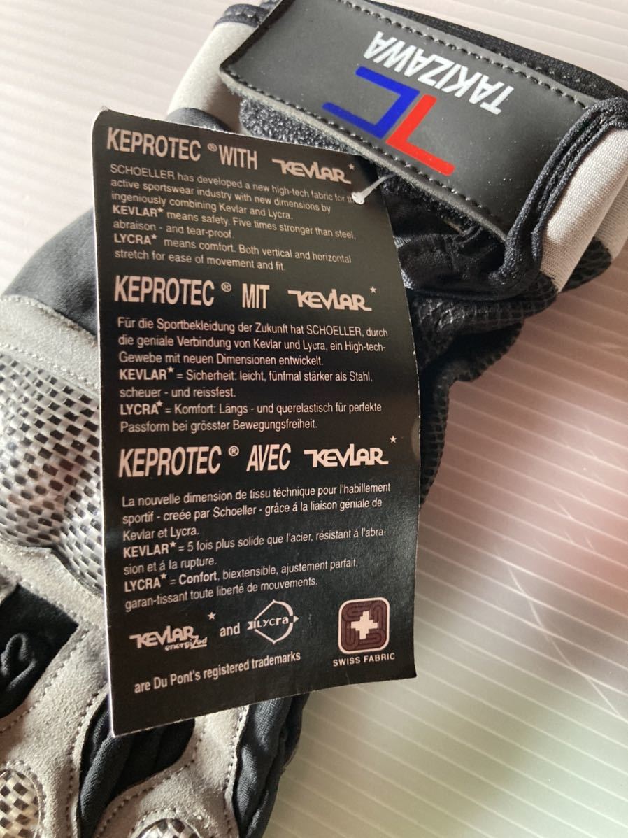 ■説明:新品未使用(長期保管品)。競輪・トラック競技用のレーサーグローブです。拳部分はホワイトカーボンケプラーカップで保護しており落車時の怪我を軽減します。また掌部分はグリップ性能に優れた英国製ピタード生地を採用しておりハンドルをしっかり握ることができます。私も同じ手袋を使用していますが、少し小さく感じますので、普段お使いのサイズよりワンサイズ下でも大丈夫と思います。定価6820円(税込)