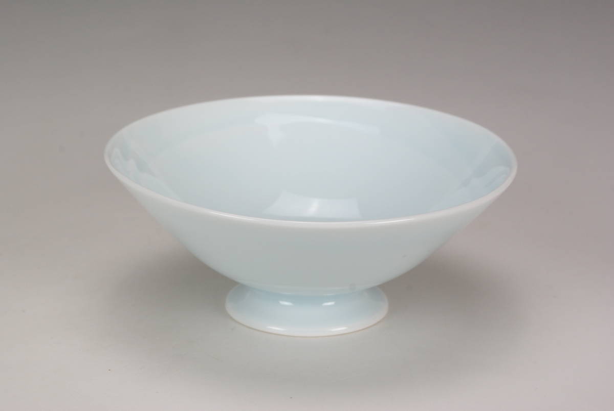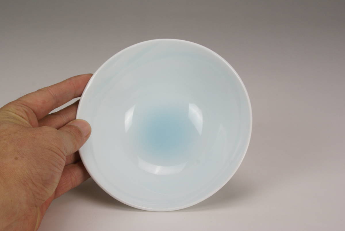 【湖美】久保田烈工 青白磁 流線文 碗 共箱 白磁 悠斗窯
