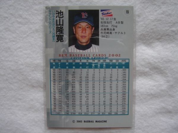 【BBM プロ野球カード 2002】No.19 池山隆寛 ヤクルトスワローズ【トレーディングカード トレカ ベースボールマガジン社】