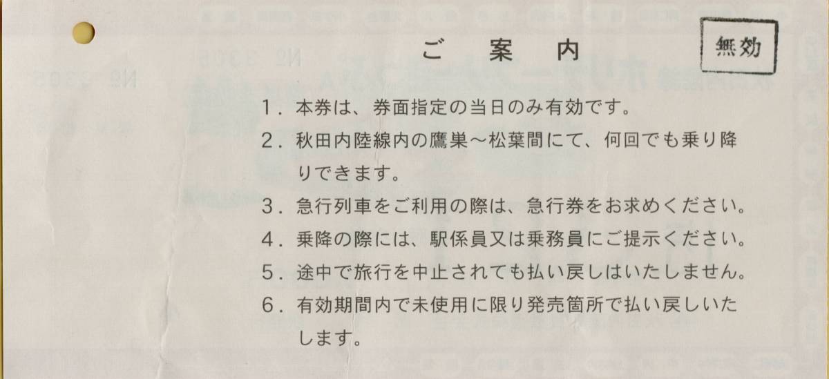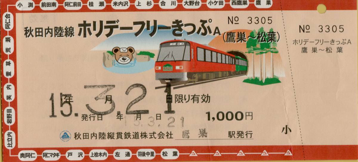◎ 秋田内陸線 ホリデーフリーきっぷA (鷹巣~松葉)