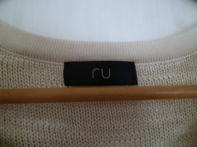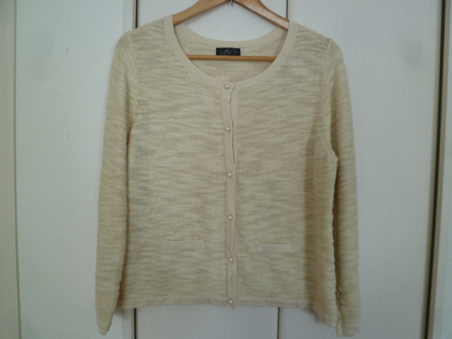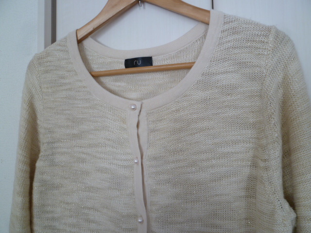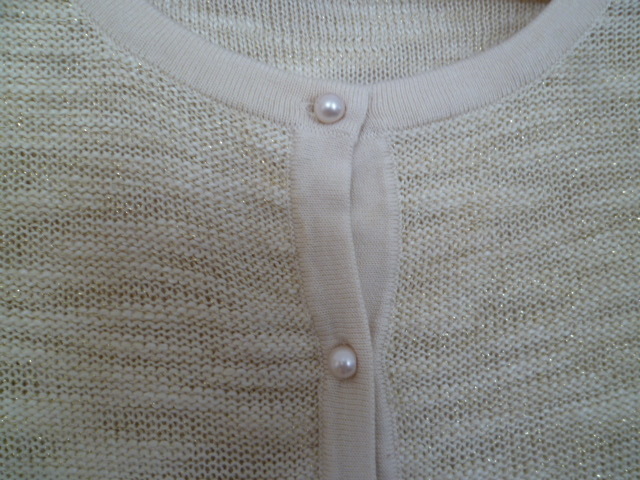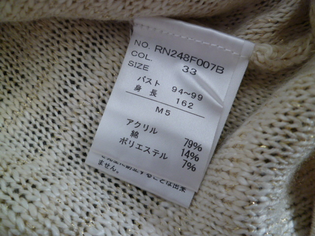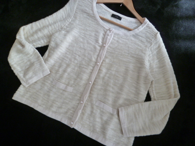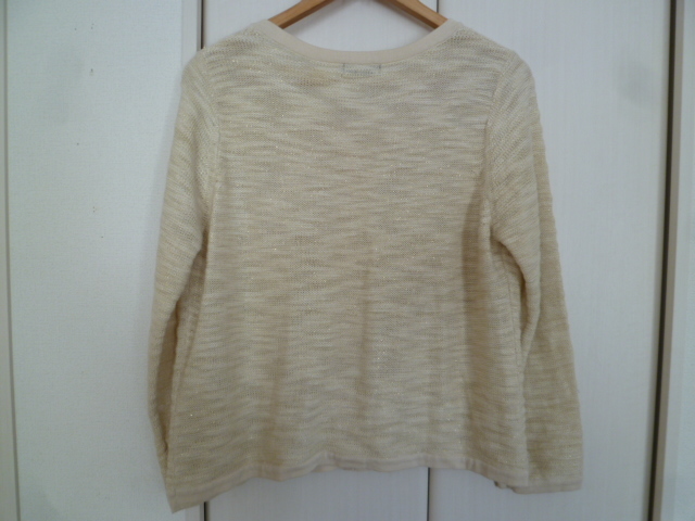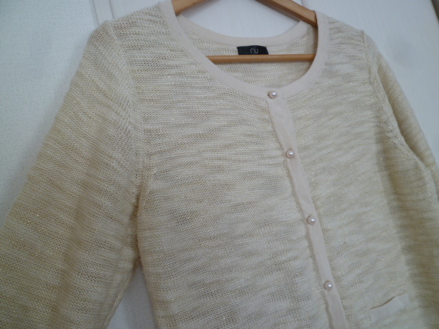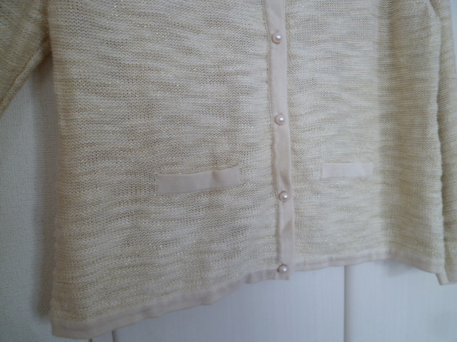 ru△オフホワイトゴールドスリット糸ボーダーパールボタンニットカーディガンジャケットM5/丸井入園式入学式羽織△② 212