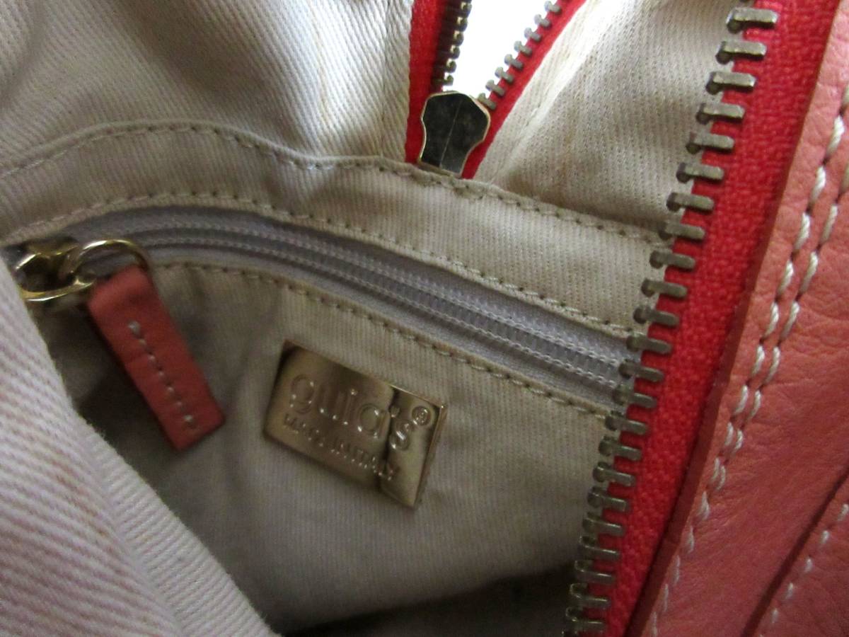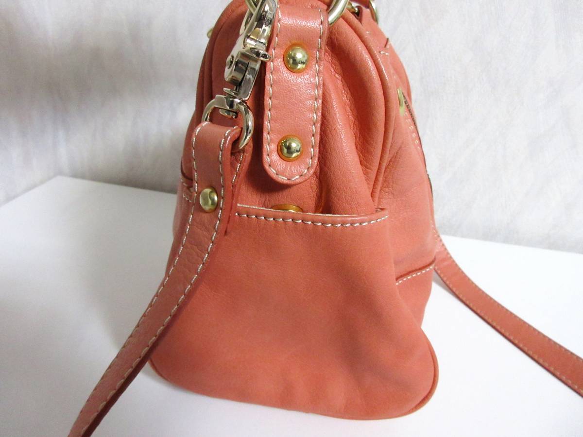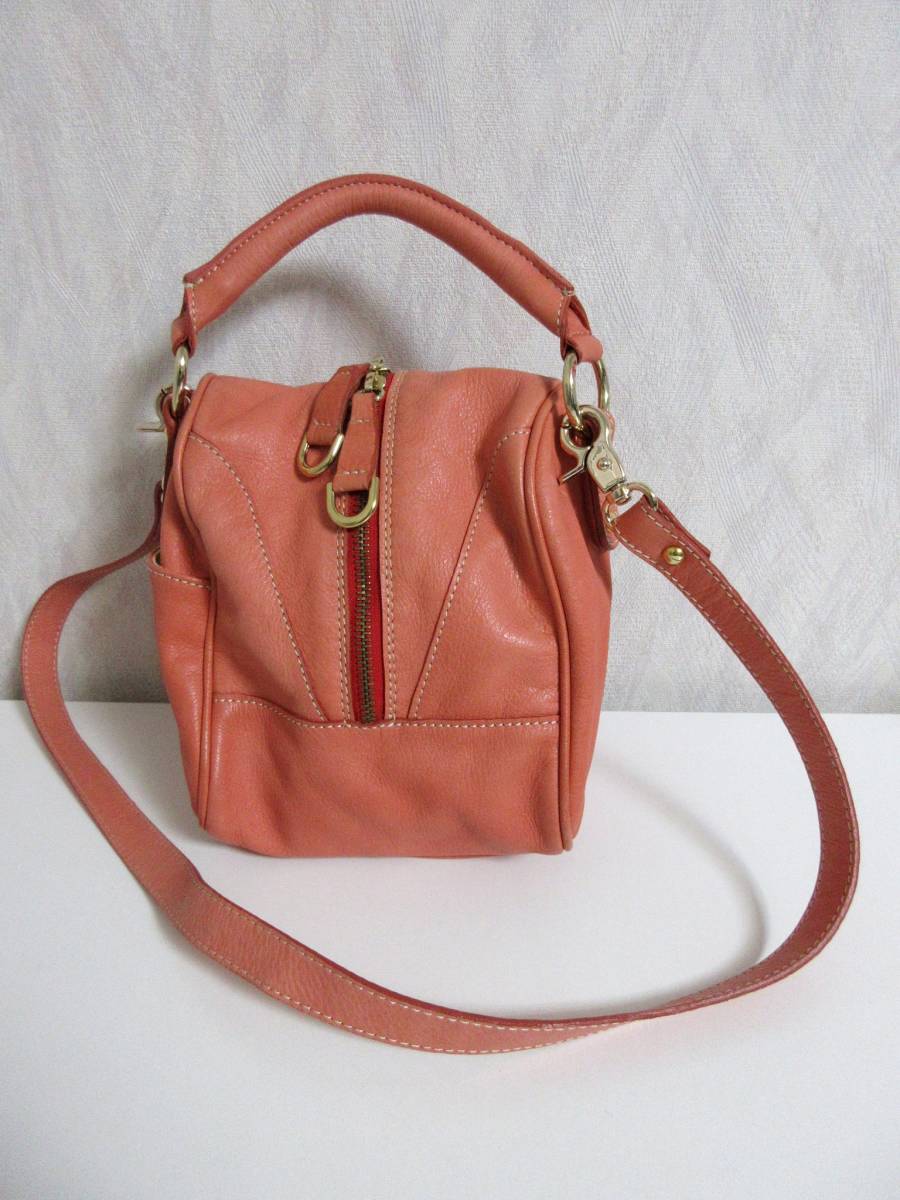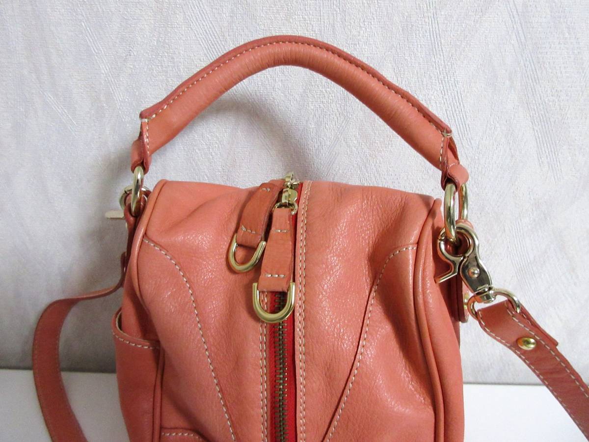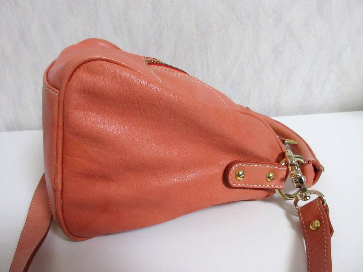 グイアス GUIA'S レザー ハンドバッグ ショルダーバッグ コーラル系 北1385