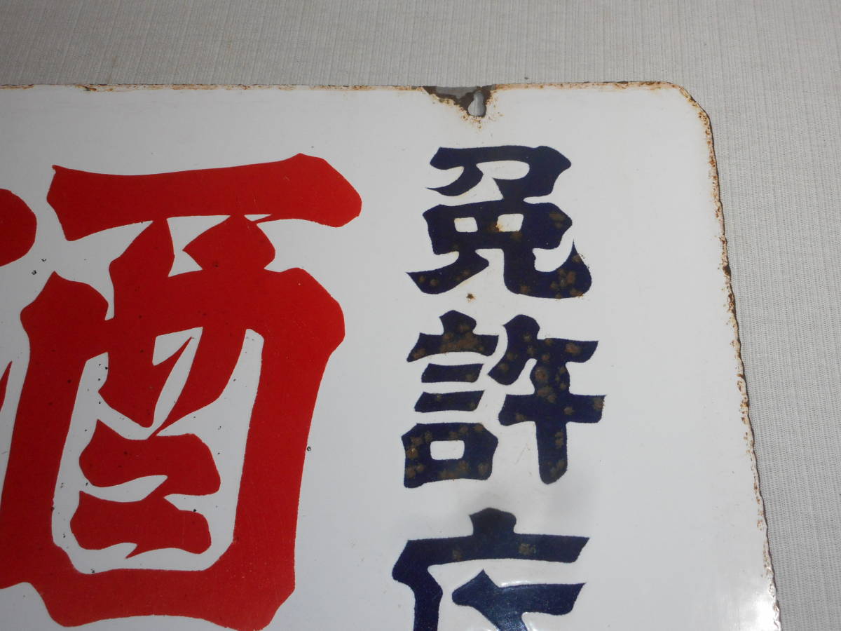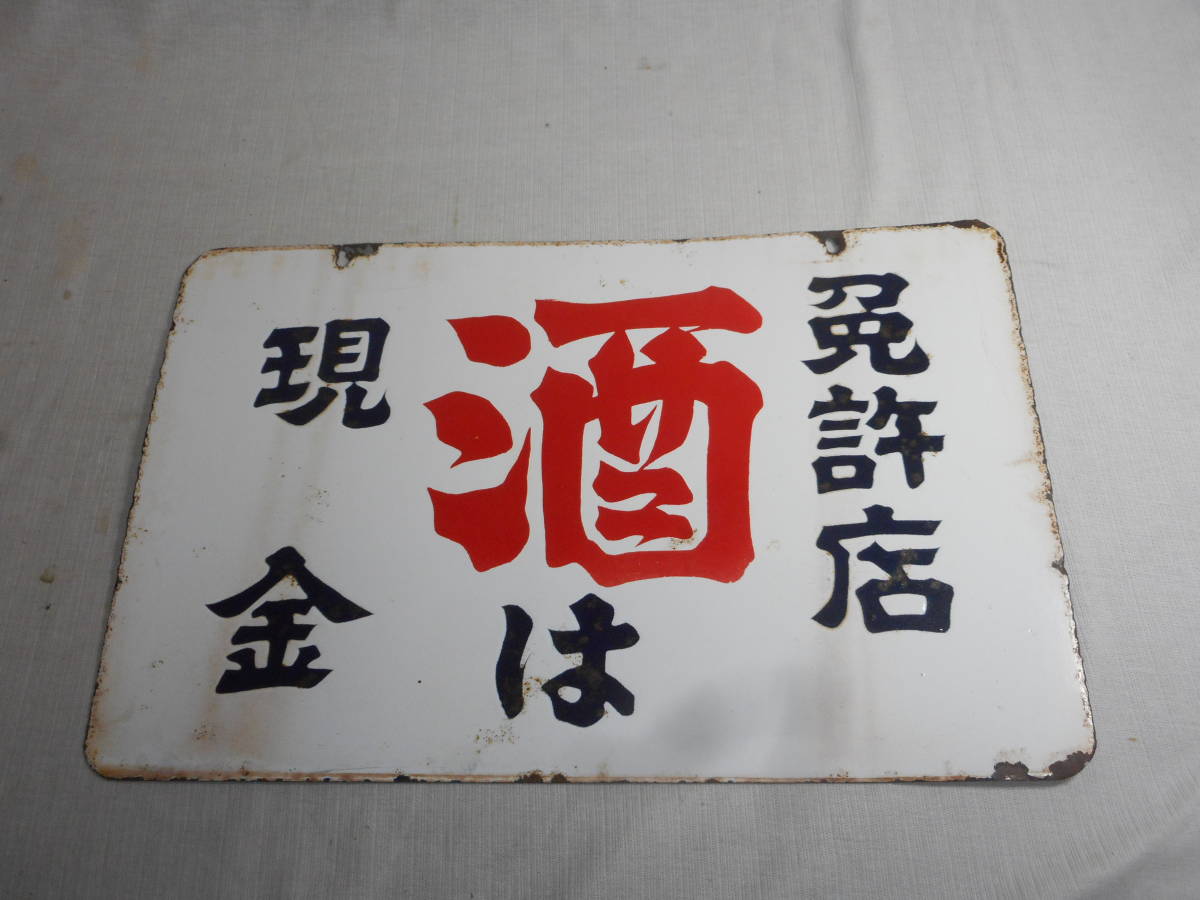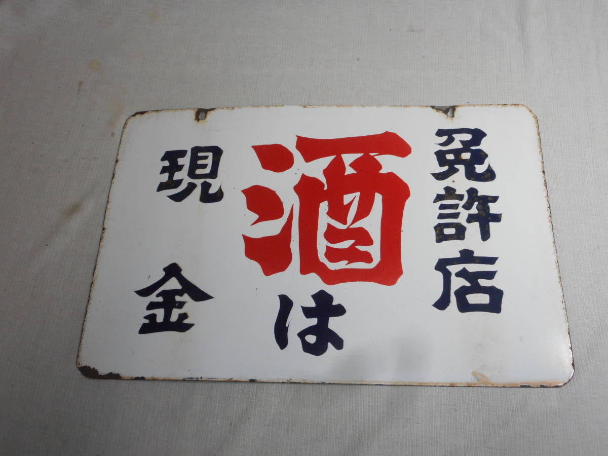 古いホーロー看板★酒は現金・免許店・両面★企業物・非売品