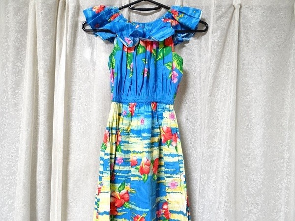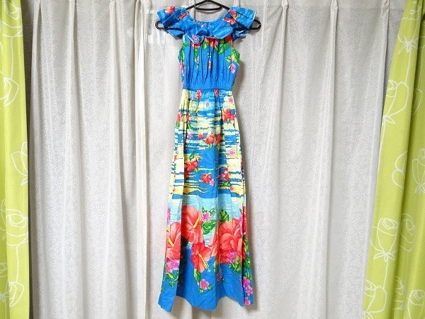 美中古 Mango マンゴー ハワイ フラダンス ムームー ワンピース ドレス ハイビスカス柄 衣装