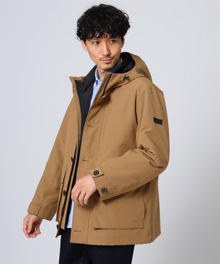 新品 タケオキクチ TAKEO KIKUCHI グログラン3WAYダウンライナーブルゾン ダウンコート ジャケット Lサイズ ベージュ 茶色 フード付 上着