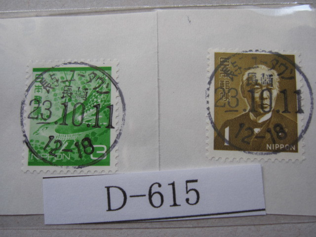 (D-615)使用済 年号下線入 D欄入 長与ニュータウン簡易郵便局