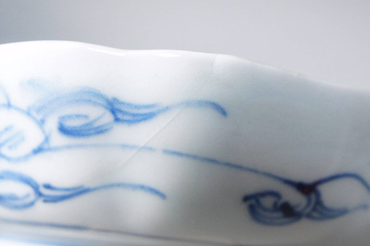 状態 :1枚にホツがあります。もう1枚に釜傷から入がありますが、釉薬の下ですので、引っかかりません。画像参照