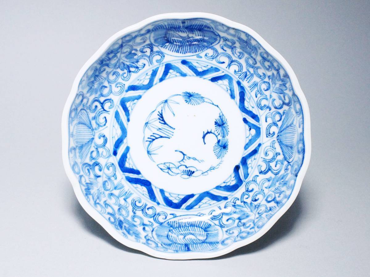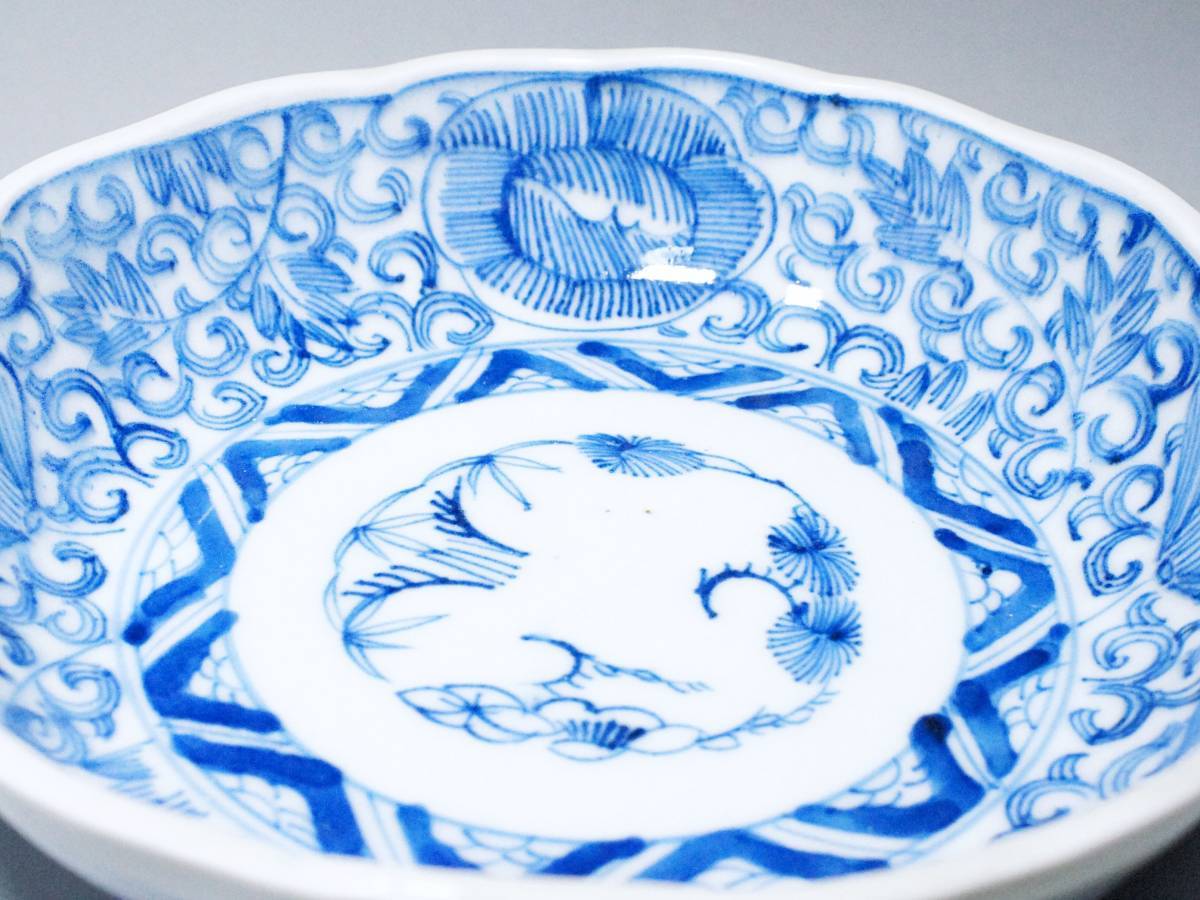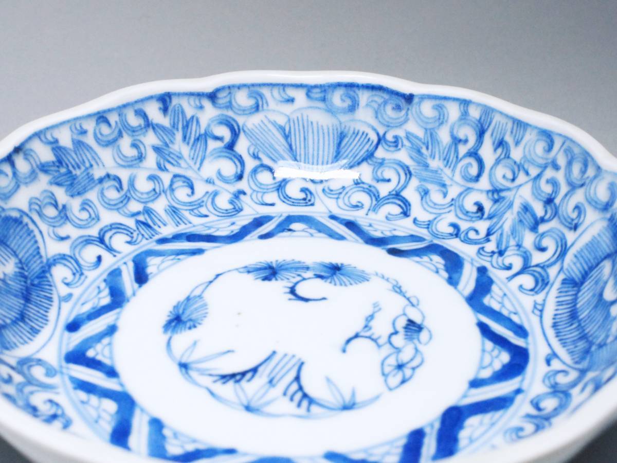 古伊万里 線書 花の図 輪花 膾皿 五枚 No.A1-890