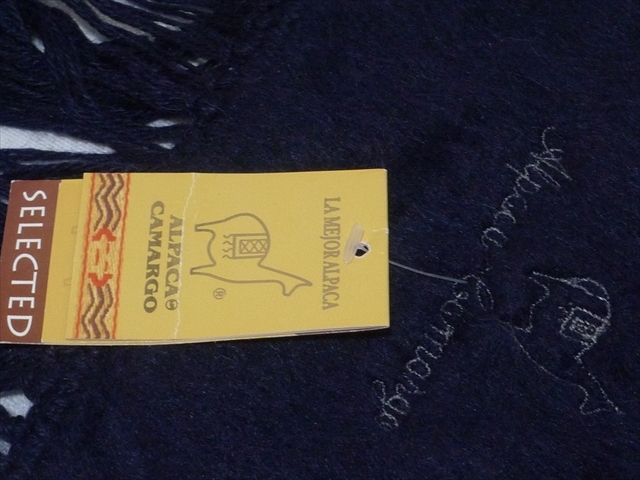 ALPACA CAMARGO/ペルー製「アルパカ マフラー」濃紺色 タグ付き 未使用品です。 アルパカの毛を用いたマフラーです。アルパカの毛は通常の ウールに比べても軽くやわらかいため、薄手でも暖かいです。 ・寸法は、横約174センチ(フリンジ含まず)、幅約23センチです。 ・重さ約130g 発送は、レターパックプラスを予定しています。 | ||