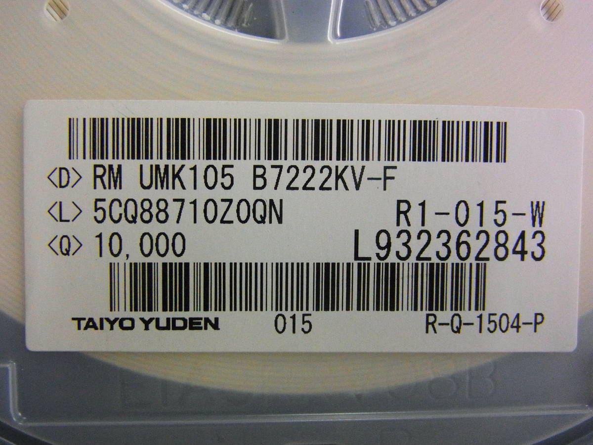 太陽誘電 1005型コンデンサ 2200pF 5% 50V RM-UMK105 B7222KV-F 10,000個×1巻-[BOX33]