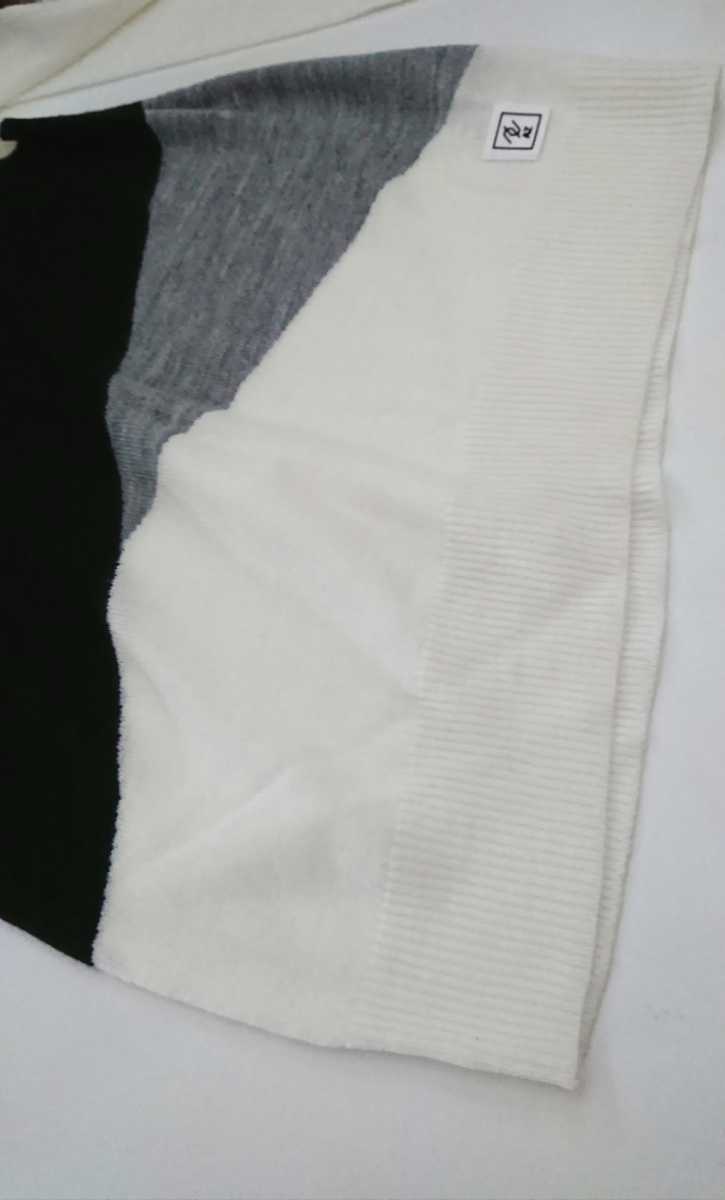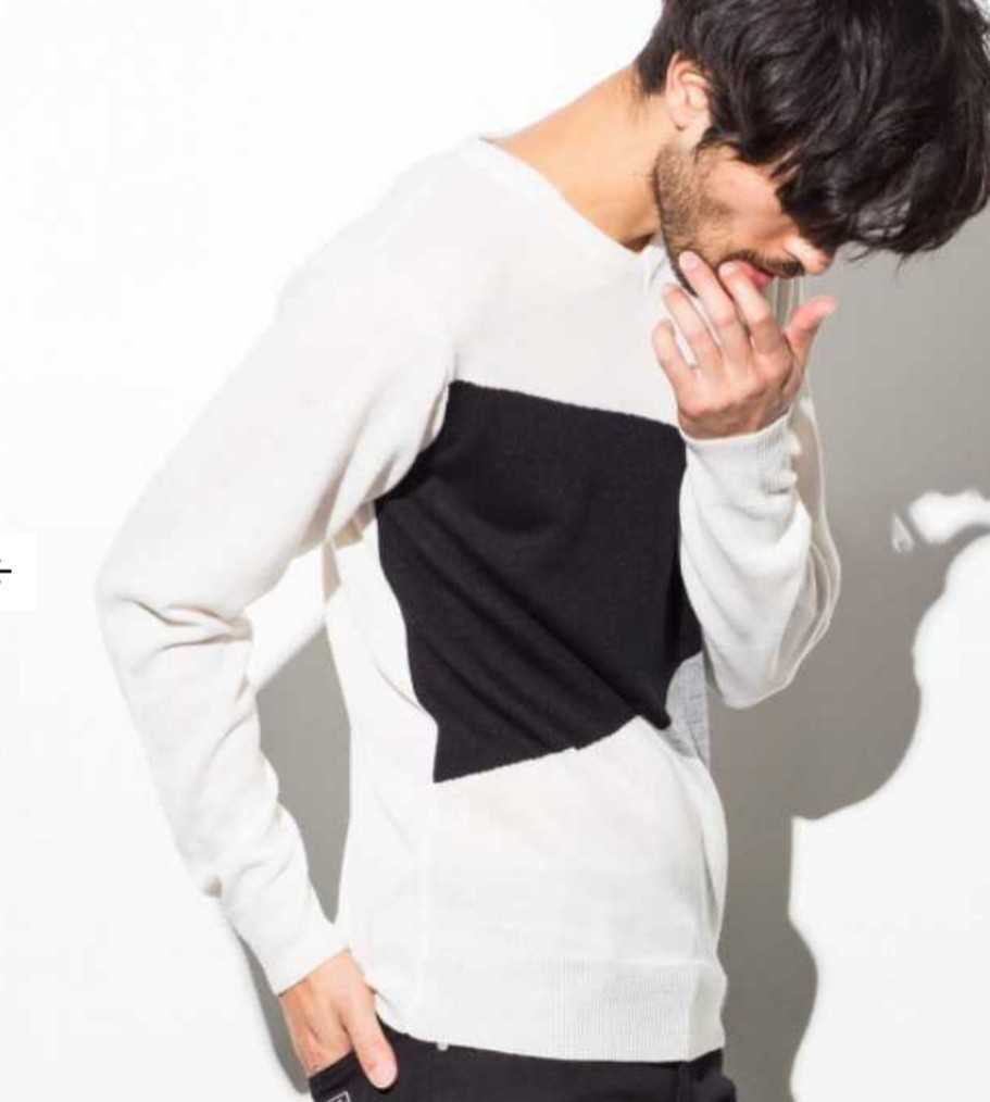 コントラストの強い色遣いと、ジオメトリックなブロッキングによって、カジュアルながらシャープな面持ちに仕上がっています。