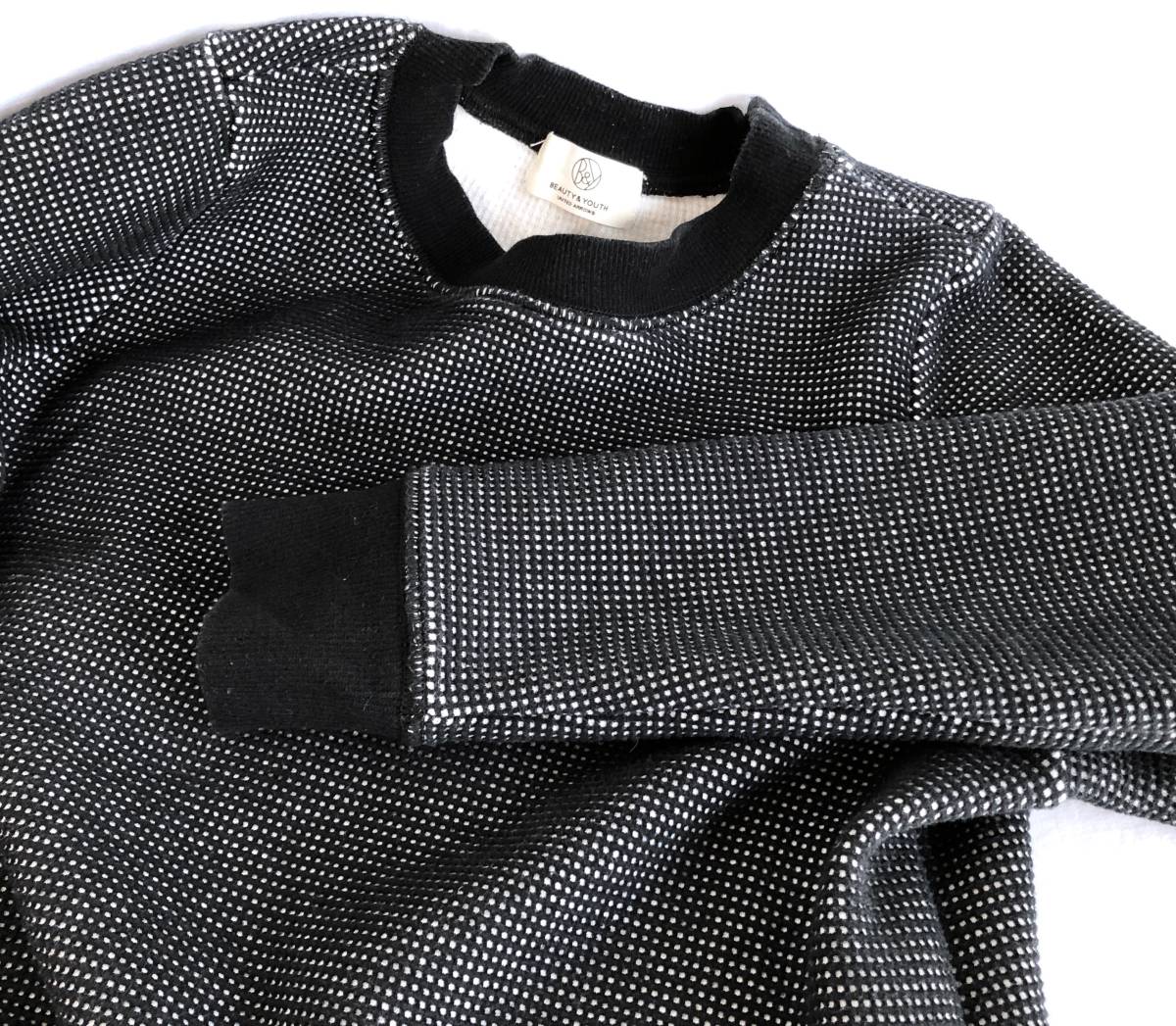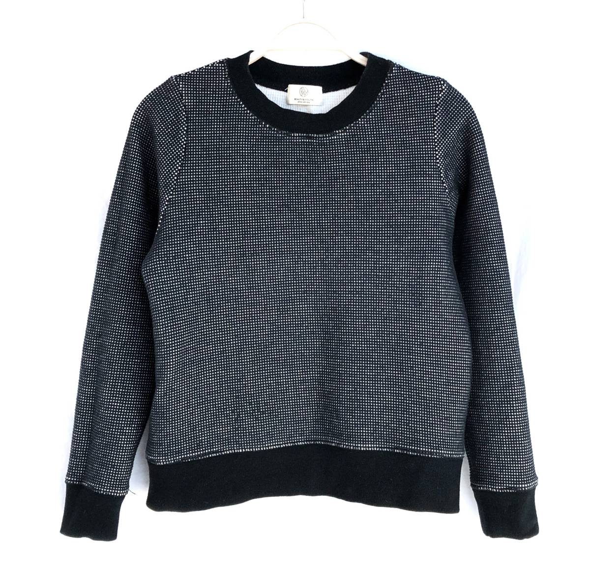 | Beauty&Youth ビューティアンドユースのトレーナー。少しふかっとした質感の生地。カジュアルで着心地がいいですが、きちんとした雰囲気のあるトップスです。 ●サイズ *サイズ表記がありませんが、S~Mサイズくらいです。 ・肩幅:32cm ・身幅:47cm ・身丈:52cm ・そで丈:58cm *フラットにて採寸。多少の誤差はご了承ください。 ●素材:コットン100% ●色:黒、白 *大切に着ておりましたので、気になるヨゴレなどはありませんが、中古品ですので、ご理解の上ご入札ください。気になる方、神経質な方はご入札をお控えください。 ●他にも多数出品中。ぜひご覧ください! | |||