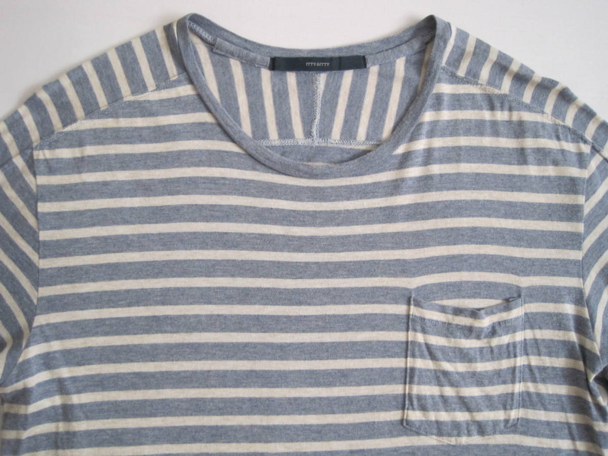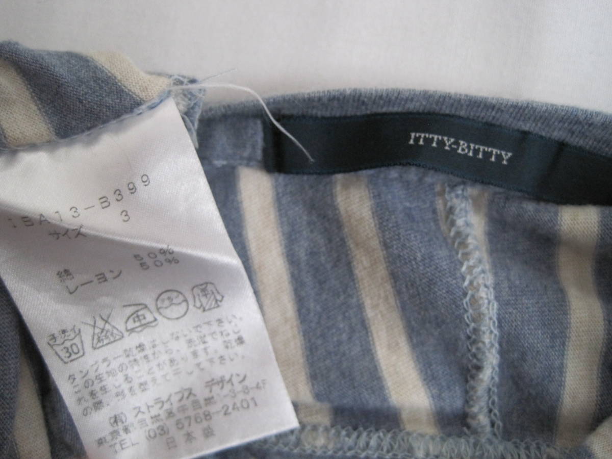 イッティビッティのボーダーTシャツ。袖、肩生地切替になっています。サイズ3。