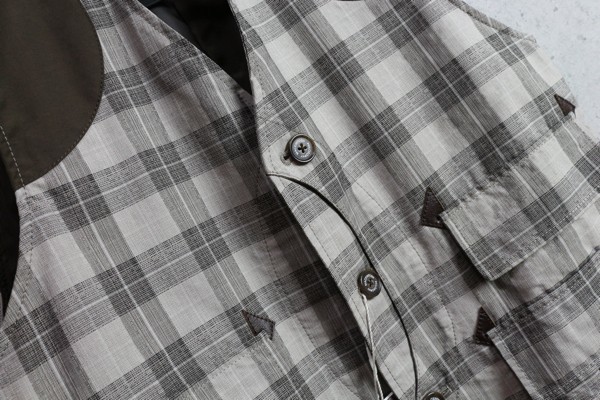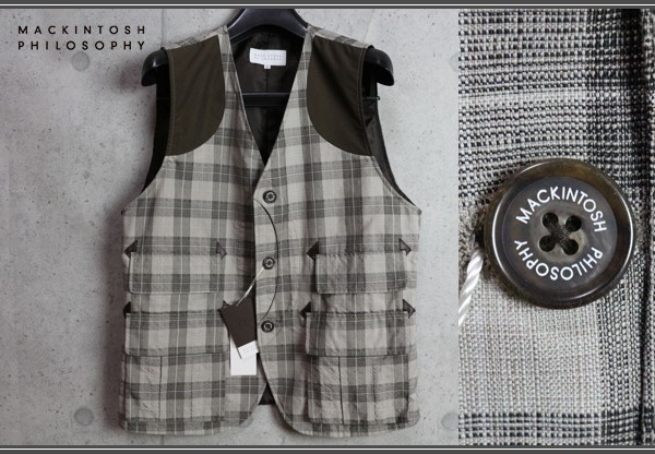 新品マッキントッシュ フィロソフィー 撥水シリコンコーティング チェック ベスト38/M茶灰 定価3.4万/MACKINTOSH PHILOSOPHY/ジレ2