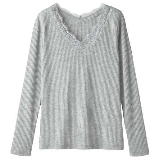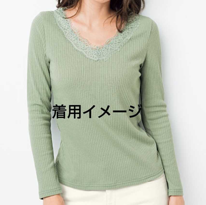 襟ぐりレース 長袖 カットソー (ポリエステル65%、綿35%(テレコ))、3Lサイズ(仕上げ寸法(約): バスト99cm、身丈63cm、肩幅36cm、袖丈58cm)、新品、未使用です。