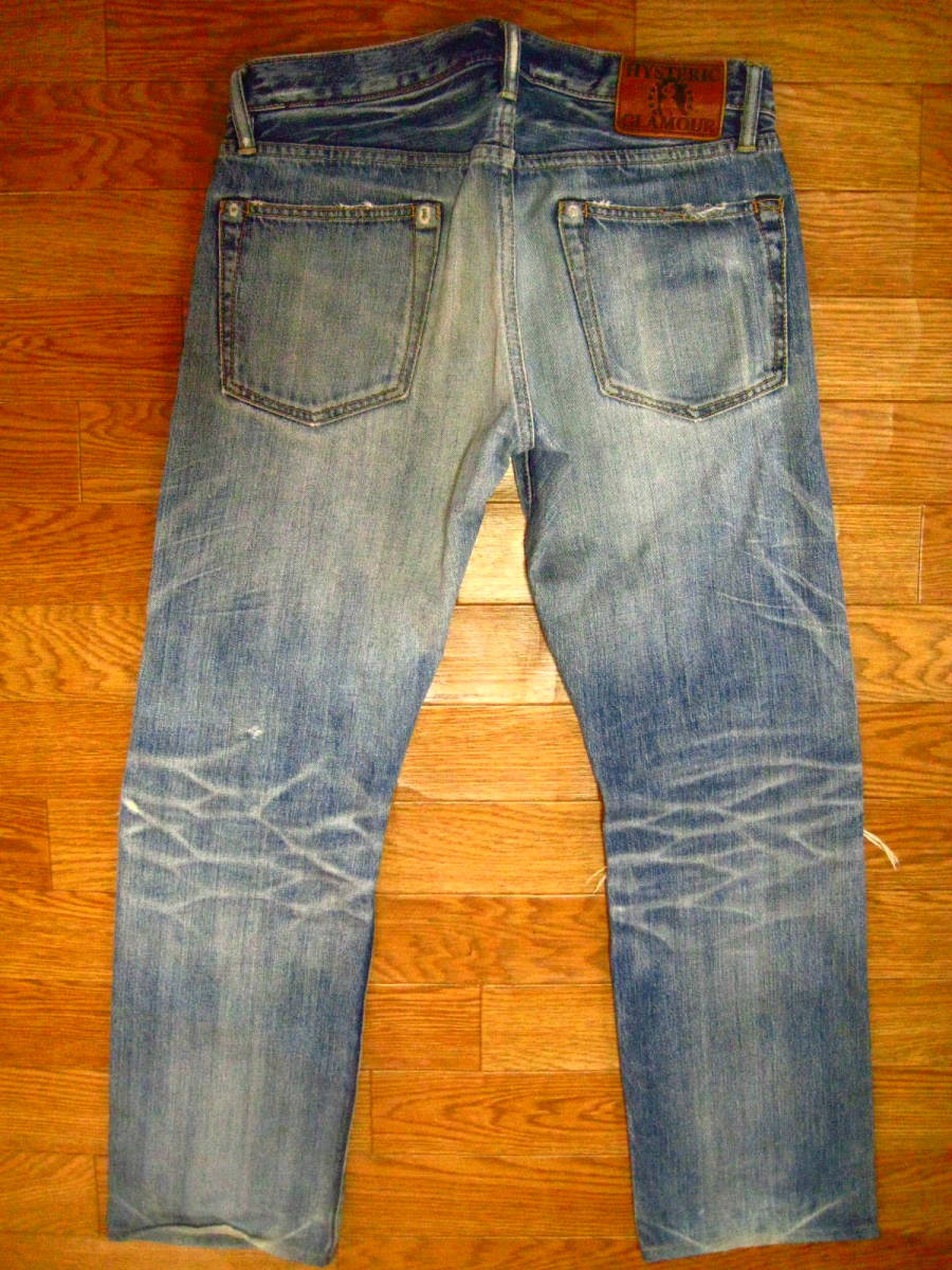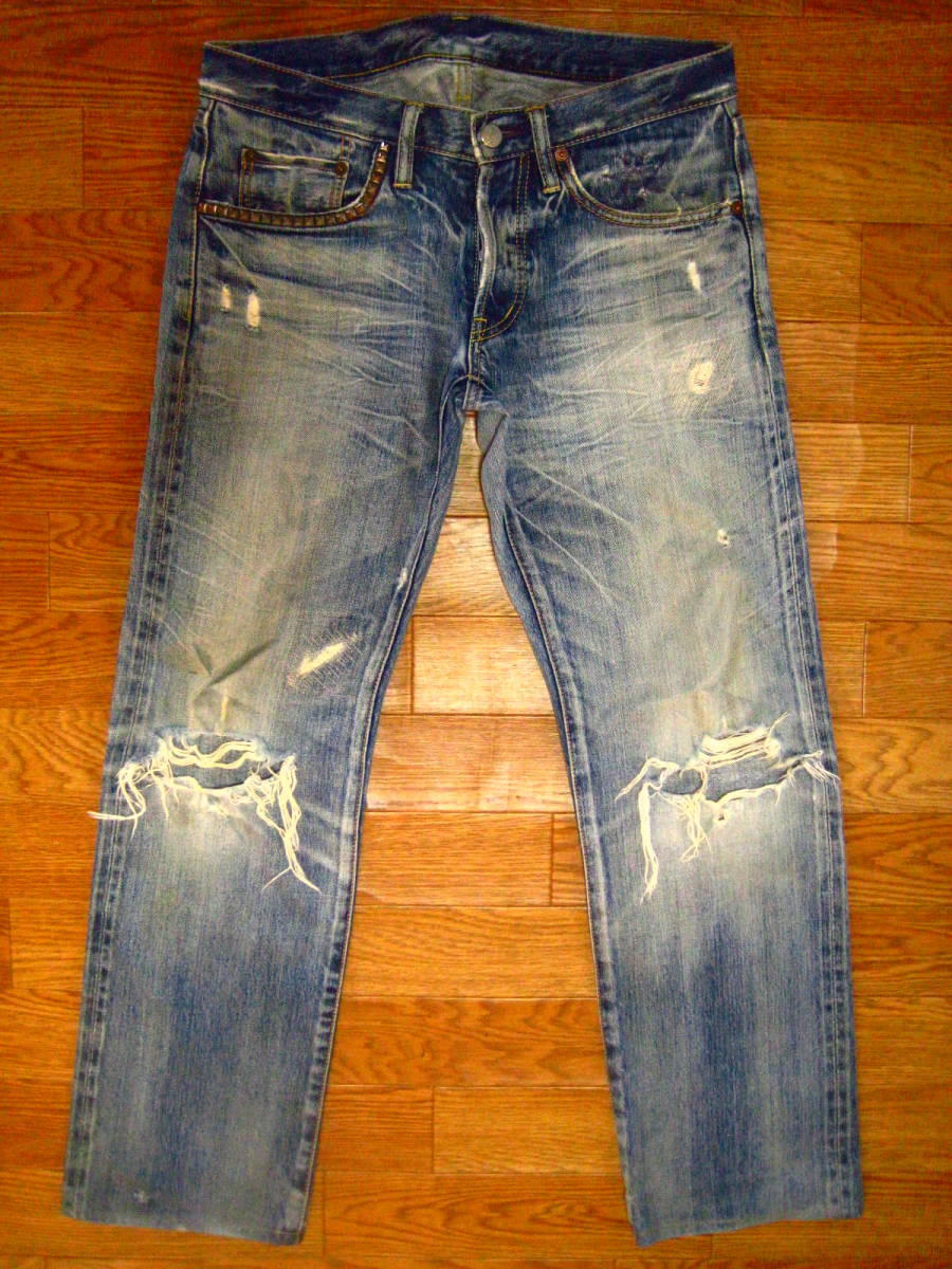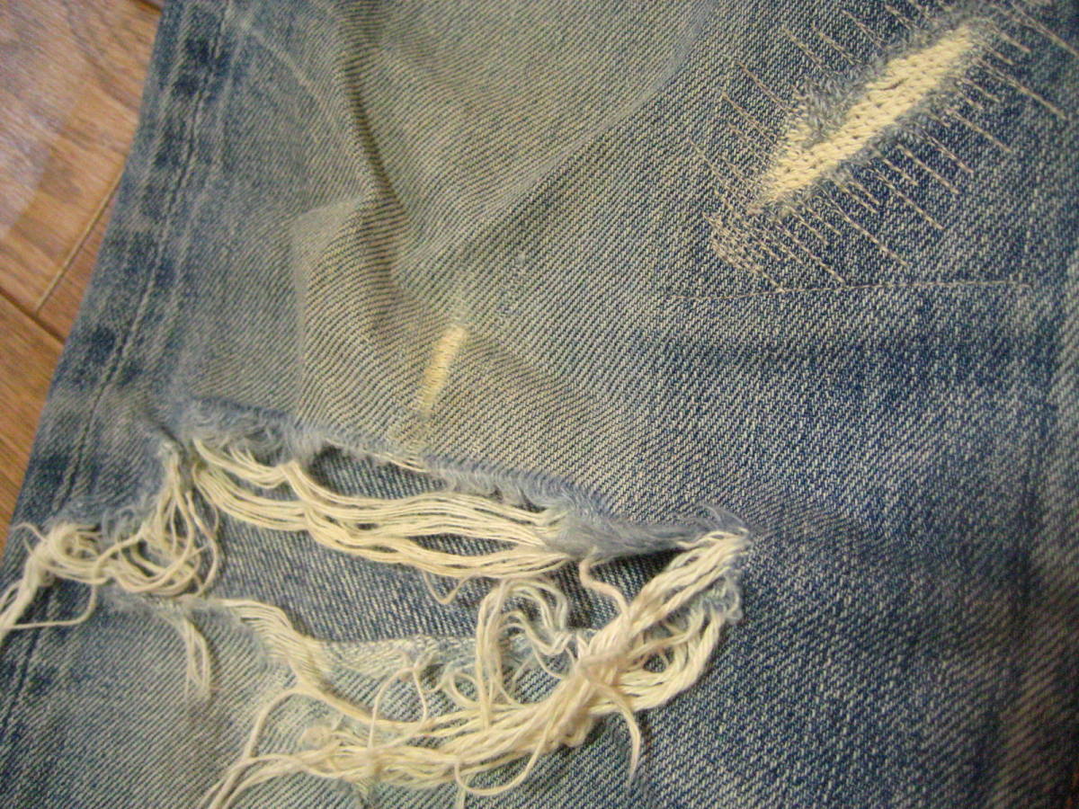 。○●サイズ表記●○。 W30 ボタンフライ 。○●平置きで実寸サイズ●○。 ウエスト約82㎝、レングス約71㎝、裾幅約20㎝ 太もも幅約28.5cm、股上前約21㎝、総丈約94.5㎝ ●6割近く色残りありです。 ●革パッチ・隠しリベット・ウエストバンドとバックポケットの縁はシングルステッチ・ポケットスタッズ・右ひざリペア・各クラッシュ・セルビッジなどなど。 ●極上の風格、しっかりとしたメリハリ感、ヒゲ・アタリ・タテ落ち感もこれから楽しめる1本になります。 ●実にカッコいいパンツになっております。激安で出品いたしますのでぜひこの機会にどうですか!!!
