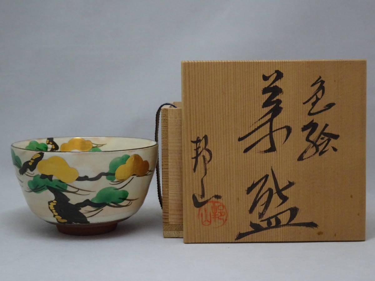 期間限定!◎◎利休kura茶道具RiQ蔵◎◎ 茶碗 / 色絵松茶碗 高島邦山 京焼 / 共箱【骨董・美品】