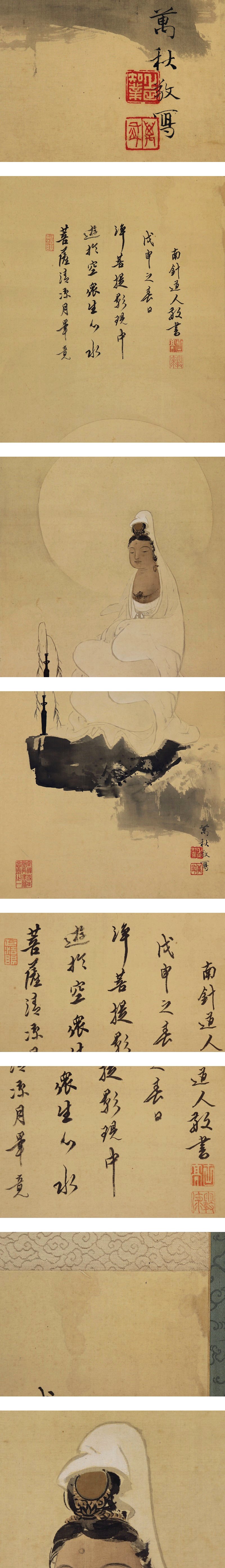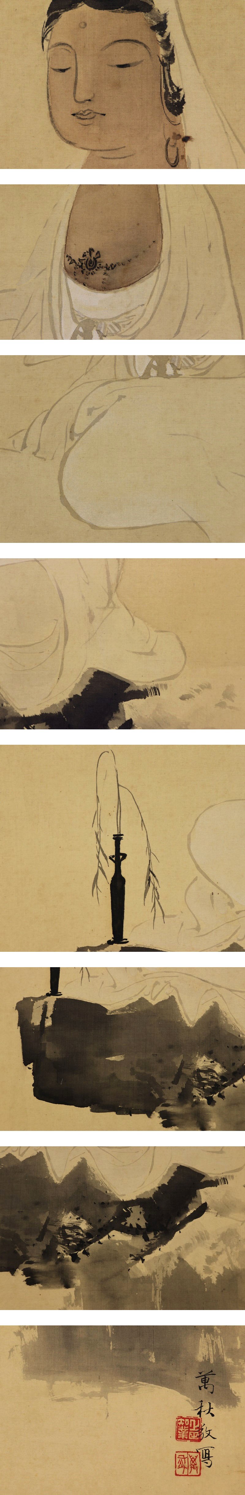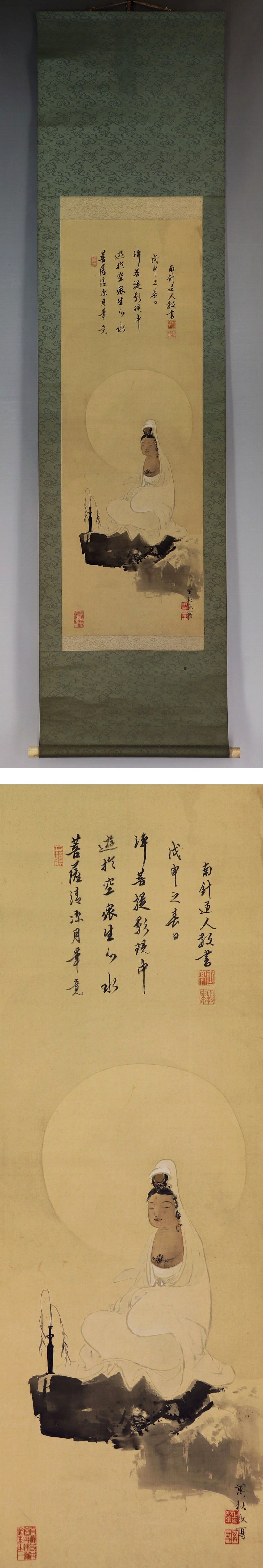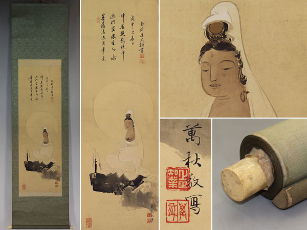| №2009026【真作】上田萬秋【岩上観音】◆絹本◆合箱◆掛軸 | |