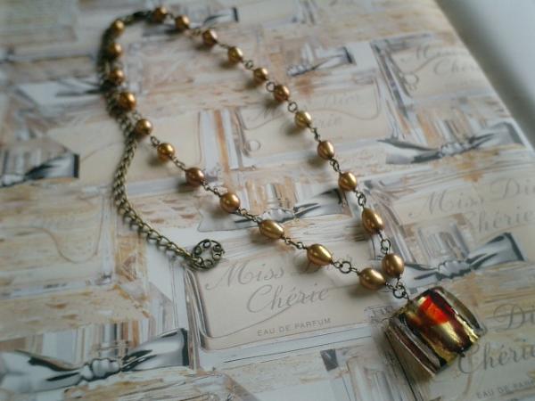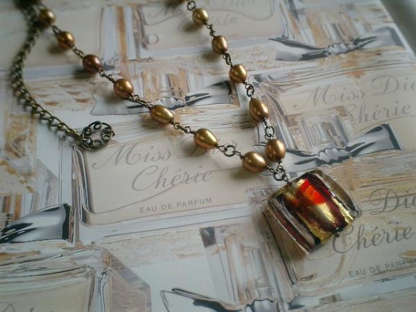 センチメンタルシリーズです♪シックなゴールドの淡水パールと絵画的なベネチアンビーズのネックレスです♪繊細でシックなイメージでちょっと華やかにまとめました♪淡水パールは7×9ミリ位のバロックでトップのベネチアンは2センチのスクエアです♪個性的な模様がキュートです♪♪長さは全長58センチ位で調節自由です♪チョーカー風に着けても長めに着けてもシックで大人っぽい表情です♪シンプルで飽きのこないいつまでも着けられるデザインを考えて作りました!同じシリーズのデザイン違いも出品しています♪お揃いのブレスレットも出品予定です♪ハンドメイドをご理解頂いてノークレーム、ノーリターンでお願いします