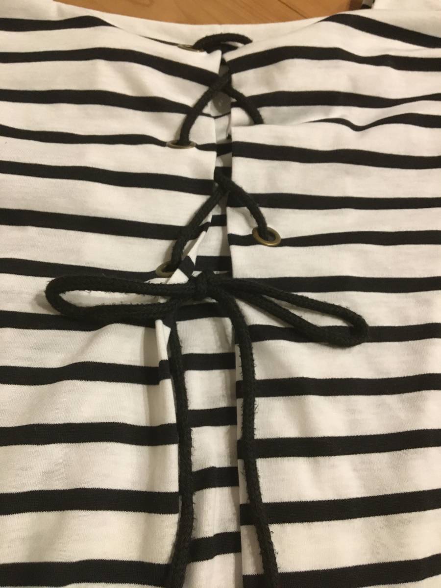 グローバルワーク GLOBAL WORK バック レースアップ デザイン 半袖 ボーダー カットソー M です。
