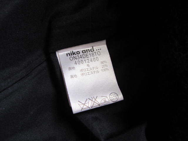 「niko and...」さんのダッフルコートです。着丈約72、身幅約54です。素人採寸ですので、若干の誤差はお許しください。素材は画像3をご参照ください。お色はネイビーです。