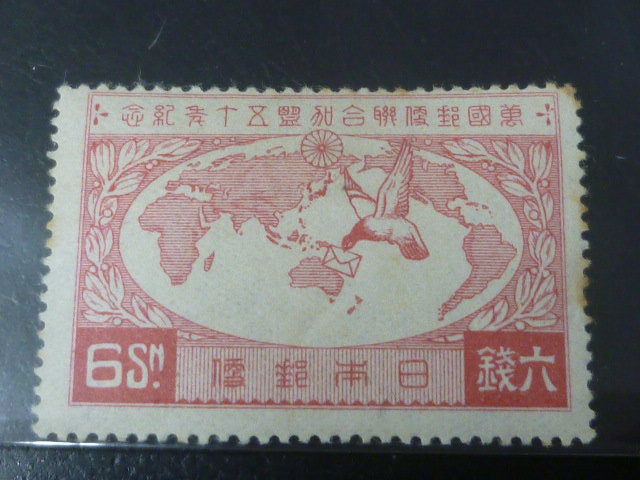 20LH S 日本切手 1927年 記44N UPU加盟50年 6銭 未使用NH・ヤケ有