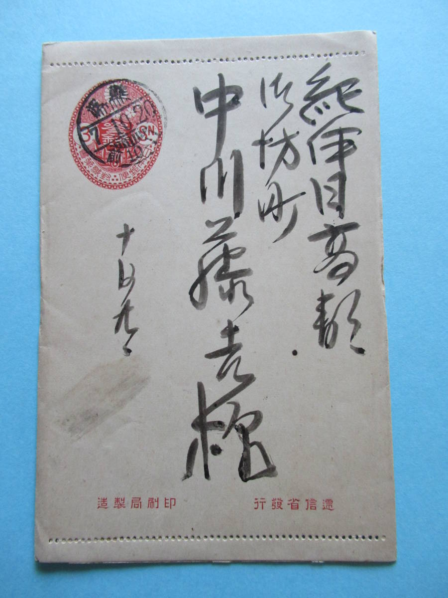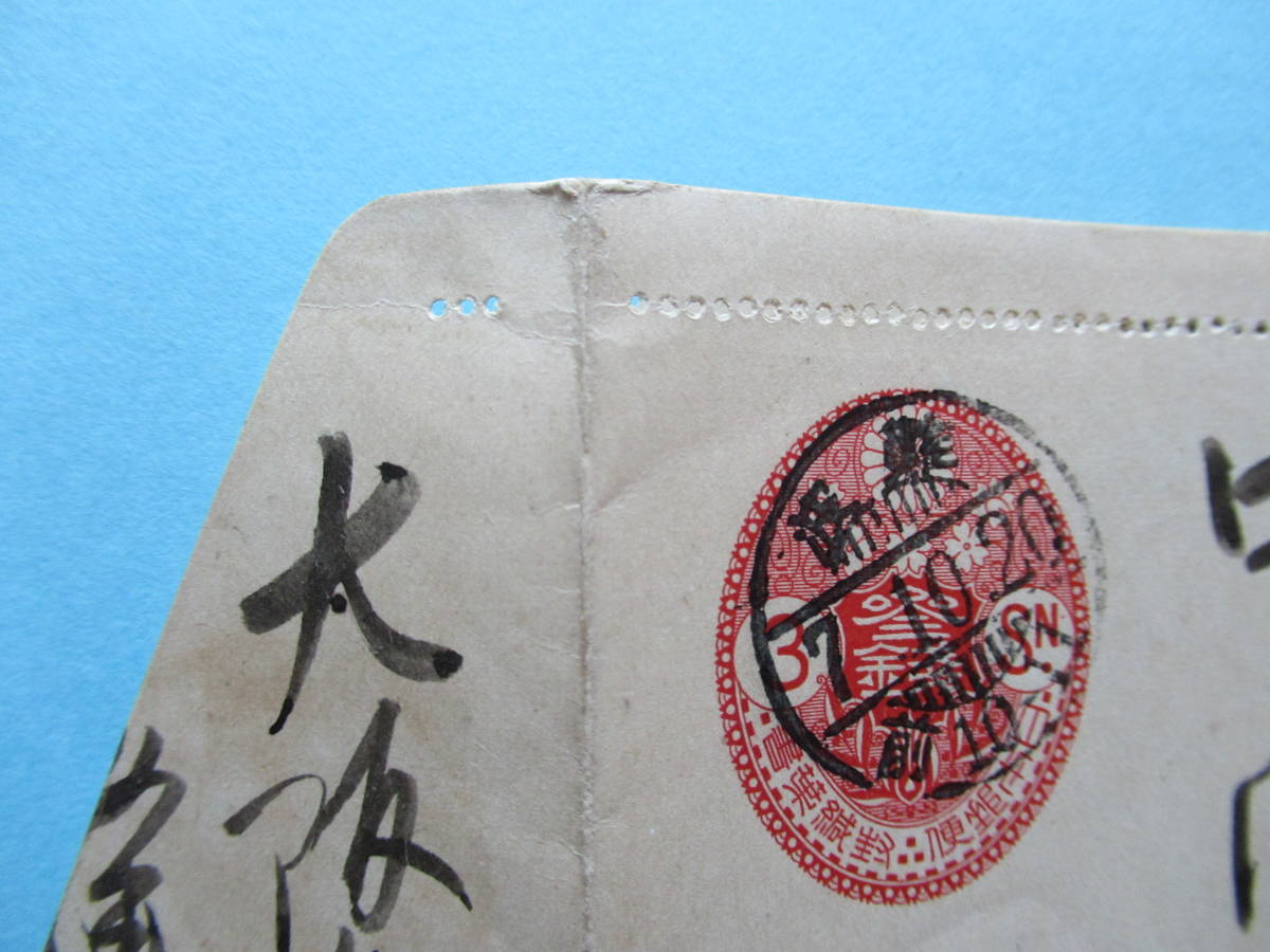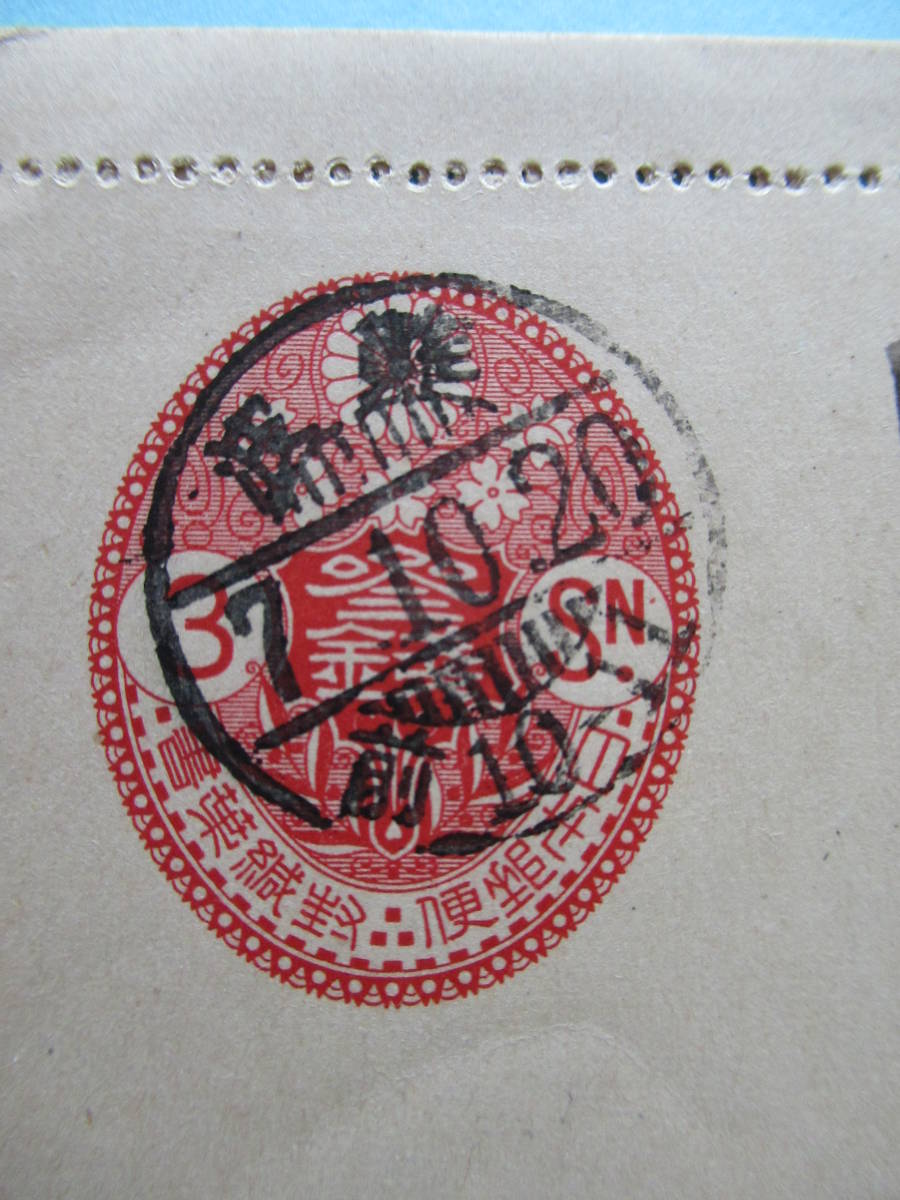 《フラップ完全》 小判型封緘はがき 3銭 【3穴】 櫛 難波 7.10.20 → 和歌山・御坊  ※大阪