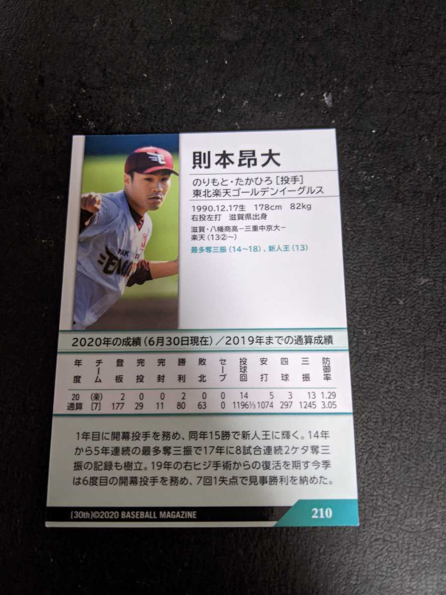 即決★BBM2020  楽天イーグルス 則本昴大 30th anniversary