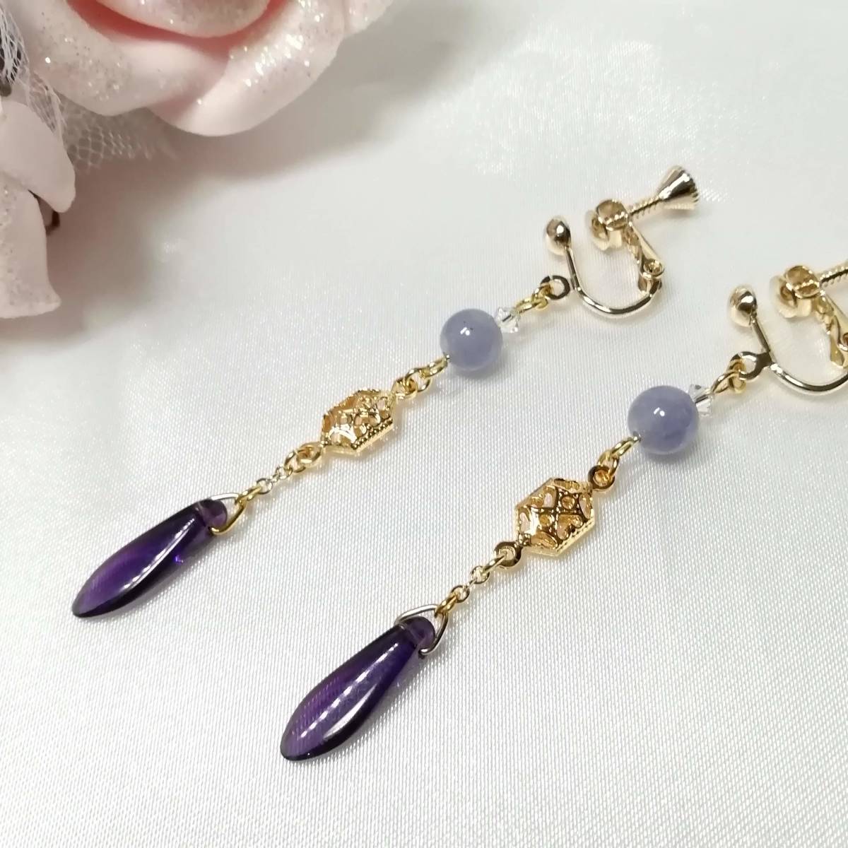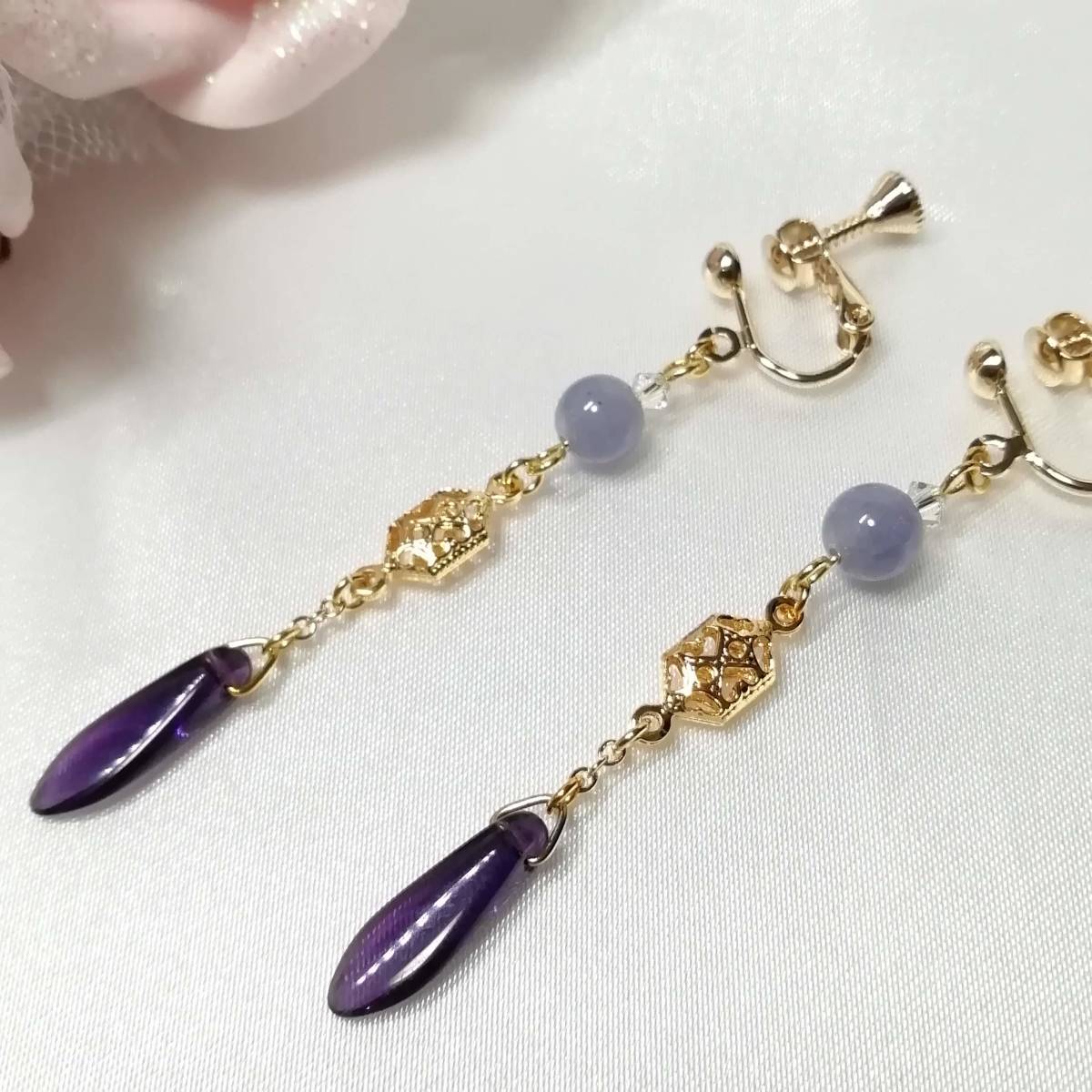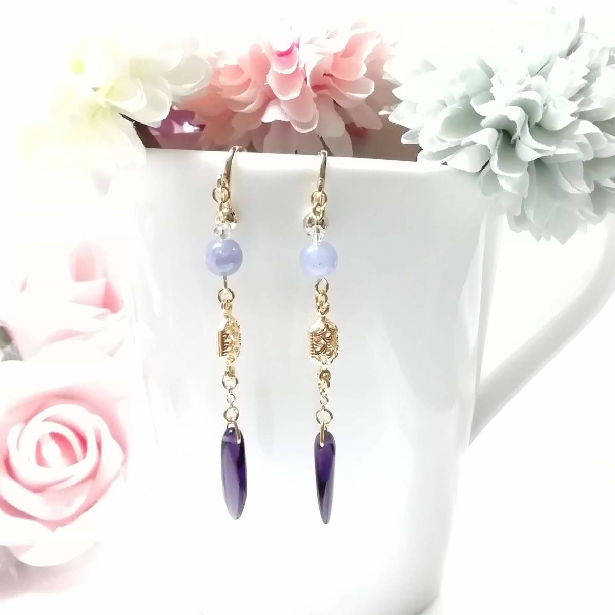 | ★商品内容★ タンザナイトのシックでゴージャスなハンドメイドイヤリング/天然石/上品/タンザナイト/ゴールド/チェコ/ダガー/ゴージャス/紫/薄紫/シック 天然石とチェコビーズダガーのタンザナイトを ゴールドのパーツと組み合わせた長めのイヤリングです。・.*・**.・.*・**。・ 薄紫色と濃い紫色、ゴールドの組み合わせが 上品でゴージャスな大人の女性らしさを印象付けます。・.*・**.・.*・**。・ 普段使いはもちろん、 お出掛けやお洒落のワンポイントにも最適です。・.*・**.・.*・**。・ 【素材】 天然石タンザナイト6mm チェコビーズダガータンザナイト16mmx5mm スワロフスキー5328クリスタル(オーストリア製)3mm メタルチャームヘキサゴンゴールド12mmx5mm カンより垂れ下がる長さは、約5.5㎝です。 Eー758 【天然石豆知識】 ◆◆タンザナイト(黝簾石) 内部に含まれる微量なバナジウムにより美しい青紫色に発色します。 タンザニアのメレラニ鉱山でしか産出されない希少価値の高い神秘的な石です。 1967年にタンザニアで発見された青色のゾイサイトに、NYのティファニー社が産出国にちなんで命名した商品名が一般化しました。 古代ケルト民族の間で「霊力を授ける魔法の石」として崇められ、特別な儀式用の用具や首長の装飾品として使用されたと言われています。 意識を高次元に高め、正しい判断を下す能力を与え、落ち着きと思慮深い思考で物事を成功に導く力があると伝えられています。 ★注意事項★ ***~ご購入前に必ずお読み下さい~*** *・*・*落札後について*・*・* *落札後4日以内にお手続き、ご連絡が無い場合は落札者都合で削除致します。 *発送日指定・ご入金の予定が1週間以上先をお考えの方は、入札の前に質問よりご連絡くださいませ。 予めご了承の上、ノークレーム・ノーリターンでお願い致します。 *・*・*商品について*・*・* *一点一点心を込めて作っておりますが、手作りなため多少の歪み等あるかもしれません。 手作りの味わいと、世界で一つだけの作品とお考えいただければ幸いです。 *デリケートな商品ですので、強く引っ張ったりすると破損する事もあります。 お取り扱いにはご注意ください。 *ご覧のPC、スマホによっては画像と実物の色味が多少異なる場合があります。 *基本イヤリング金具は跳ね上げネジ付き金具にて作成しております。 **ご希望によりピアスへの変更も承っております。 【フックピアス…無料/キャッチピアス…別途追加料金120円】 *その他…樹脂ノンホールピアス(無料)・カン付き樹脂ノンホールピアス(別途追加料金20円)にも変更をお受け致します。 ~ご注文の際にメッセージ欄よりお申し付け下さい~ 尚、金具変更のご希望が無い場合は、掲載された写真の金具にてお送り致します。 *金属アレルギーへの対応はしておりませんので、ご心配な方はご遠慮下さいますようお願い致します。 *永くご愛用頂くために、ご使用後は柔らかい布等で軽く拭いてください。 *・*・*プレゼント用梱包のご要望もお受けいたします*・*・* *その際は、梱包費用が別途で必要となりますのでご注意ください。 また、ご希望の梱包タイプによって、発送方法が変わりますので、送料が別途必要となります。 プレゼント用梱包タイプ 【袋→100円】 発送方法【クリックポスト(送料無料)】 プレゼント用梱包タイプ 【箱→200円】 発送方法【レターパックプラス(別途520円)】 袋タイプは【合計100円の追加料金】、箱タイプは【合計720円の追加料金】となります。 ◆ご希望の場合は、必ず商品ページをウォッチリストに登録した上で落札前に質問にてお問合せ下さい。◆ ◆ご希望を承り次第、一度出品を取り消し、プレゼント用梱包費用、送料などを追加した金額へ変更し、再出品致します。◆ *再出品後に再度検索して頂く手間が省けますため、プレゼント梱包をご希望の場合は必ずウォッチリストへのご登録をお願い致します。 金額変更後の再出品から3日以内に落札されなかった場合、誠に勝手ながら購入する意思がないとみなしまして、元の金額へ修正致します。 また、修正後、再度プレゼント用梱包のご希望のお問い合わせを頂きましても、お断りをさせていただきますのでご注意ください。 ご不明な点がございましたら、落札前に質問よりお願い致します。 ***ご質問について*** *ご購入前にお願い致します。 日中は仕事をしておりますので、ご返事が直ぐに出来ない場合がございます。 出来る限り早い対応を心がけますが、ご了承ください。 また、発送までには、お振込み確認後、翌日の発送を心がけておりますが、仕事の都合により2~3日程かかる場合がございます。(その際にはナビにてご連絡いたします) お急ぎの場合は、極力対応いたしますが、場合によっては対応致しかねる事もあります。ご了承下さいませ。 | |||