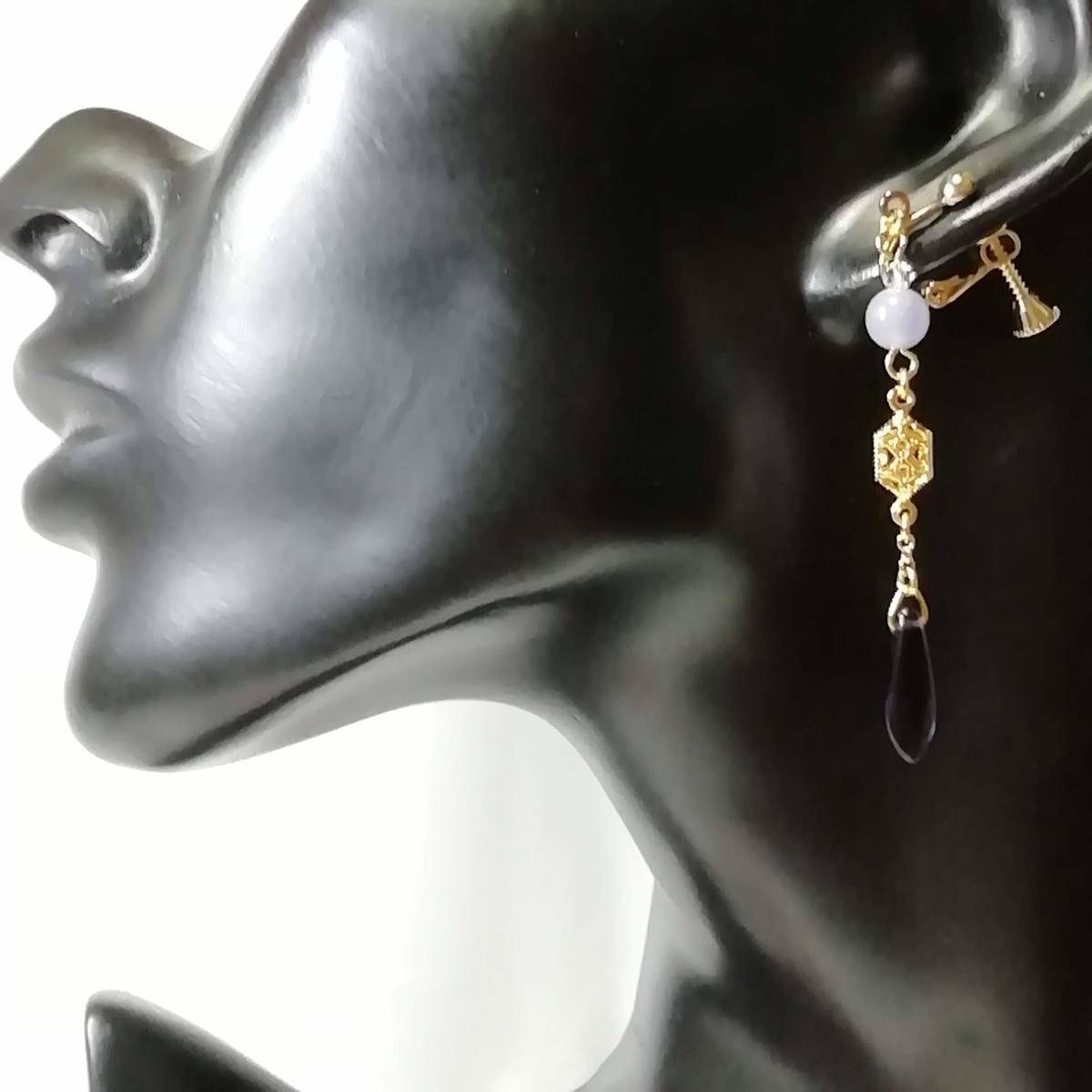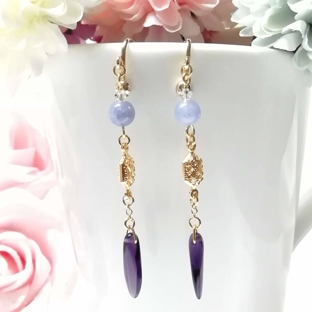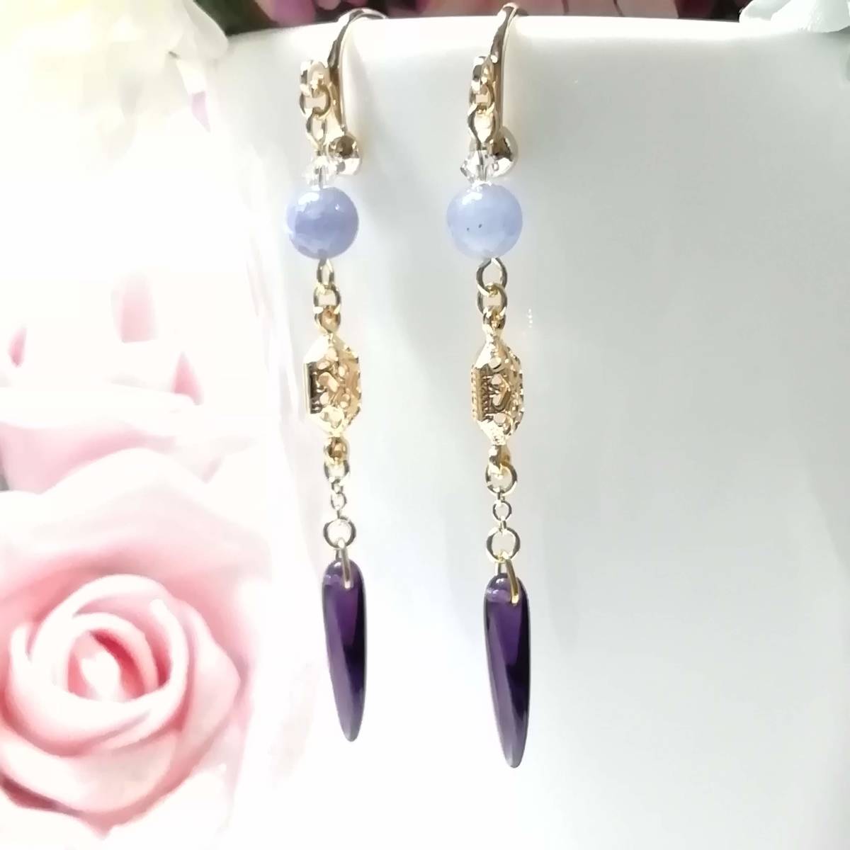 | ★商品内容★ タンザナイトのシックでゴージャスなハンドメイドイヤリング/天然石/上品/タンザナイト/ゴールド/チェコ/ダガー/ゴージャス/紫/薄紫/シック 天然石とチェコビーズダガーのタンザナイトを ゴールドのパーツと組み合わせた長めのイヤリングです。・.*・**.・.*・**。・ 薄紫色と濃い紫色、ゴールドの組み合わせが 上品でゴージャスな大人の女性らしさを印象付けます。・.*・**.・.*・**。・ 普段使いはもちろん、 お出掛けやお洒落のワンポイントにも最適です。・.*・**.・.*・**。・ 【素材】 天然石タンザナイト6mm チェコビーズダガータンザナイト16mmx5mm スワロフスキー5328クリスタル(オーストリア製)3mm メタルチャームヘキサゴンゴールド12mmx5mm カンより垂れ下がる長さは、約5.5㎝です。 Eー758 【天然石豆知識】 ◆◆タンザナイト(黝簾石) 内部に含まれる微量なバナジウムにより美しい青紫色に発色します。 タンザニアのメレラニ鉱山でしか産出されない希少価値の高い神秘的な石です。 1967年にタンザニアで発見された青色のゾイサイトに、NYのティファニー社が産出国にちなんで命名した商品名が一般化しました。 古代ケルト民族の間で「霊力を授ける魔法の石」として崇められ、特別な儀式用の用具や首長の装飾品として使用されたと言われています。 意識を高次元に高め、正しい判断を下す能力を与え、落ち着きと思慮深い思考で物事を成功に導く力があると伝えられています。 ★注意事項★ ***~ご購入前に必ずお読み下さい~*** *・*・*落札後について*・*・* *落札後4日以内にお手続き、ご連絡が無い場合は落札者都合で削除致します。 *発送日指定・ご入金の予定が1週間以上先をお考えの方は、入札の前に質問よりご連絡くださいませ。 予めご了承の上、ノークレーム・ノーリターンでお願い致します。 *・*・*商品について*・*・* *一点一点心を込めて作っておりますが、手作りなため多少の歪み等あるかもしれません。 手作りの味わいと、世界で一つだけの作品とお考えいただければ幸いです。 *デリケートな商品ですので、強く引っ張ったりすると破損する事もあります。 お取り扱いにはご注意ください。 *ご覧のPC、スマホによっては画像と実物の色味が多少異なる場合があります。 *基本イヤリング金具は跳ね上げネジ付き金具にて作成しております。 **ご希望によりピアスへの変更も承っております。 【フックピアス…無料/キャッチピアス…別途追加料金120円】 *その他…樹脂ノンホールピアス(無料)・カン付き樹脂ノンホールピアス(別途追加料金20円)にも変更をお受け致します。 ~ご注文の際にメッセージ欄よりお申し付け下さい~ 尚、金具変更のご希望が無い場合は、掲載された写真の金具にてお送り致します。 *金属アレルギーへの対応はしておりませんので、ご心配な方はご遠慮下さいますようお願い致します。 *永くご愛用頂くために、ご使用後は柔らかい布等で軽く拭いてください。 *・*・*プレゼント用梱包のご要望もお受けいたします*・*・* *その際は、梱包費用が別途で必要となりますのでご注意ください。 また、ご希望の梱包タイプによって、発送方法が変わりますので、送料が別途必要となります。 プレゼント用梱包タイプ 【袋→100円】 発送方法【クリックポスト(送料無料)】 プレゼント用梱包タイプ 【箱→200円】 発送方法【レターパックプラス(別途520円)】 袋タイプは【合計100円の追加料金】、箱タイプは【合計720円の追加料金】となります。 ◆ご希望の場合は、必ず商品ページをウォッチリストに登録した上で落札前に質問にてお問合せ下さい。◆ ◆ご希望を承り次第、一度出品を取り消し、プレゼント用梱包費用、送料などを追加した金額へ変更し、再出品致します。◆ *再出品後に再度検索して頂く手間が省けますため、プレゼント梱包をご希望の場合は必ずウォッチリストへのご登録をお願い致します。 金額変更後の再出品から3日以内に落札されなかった場合、誠に勝手ながら購入する意思がないとみなしまして、元の金額へ修正致します。 また、修正後、再度プレゼント用梱包のご希望のお問い合わせを頂きましても、お断りをさせていただきますのでご注意ください。 ご不明な点がございましたら、落札前に質問よりお願い致します。 ***ご質問について*** *ご購入前にお願い致します。 日中は仕事をしておりますので、ご返事が直ぐに出来ない場合がございます。 出来る限り早い対応を心がけますが、ご了承ください。 また、発送までには、お振込み確認後、翌日の発送を心がけておりますが、仕事の都合により2~3日程かかる場合がございます。(その際にはナビにてご連絡いたします) お急ぎの場合は、極力対応いたしますが、場合によっては対応致しかねる事もあります。ご了承下さいませ。 | |||