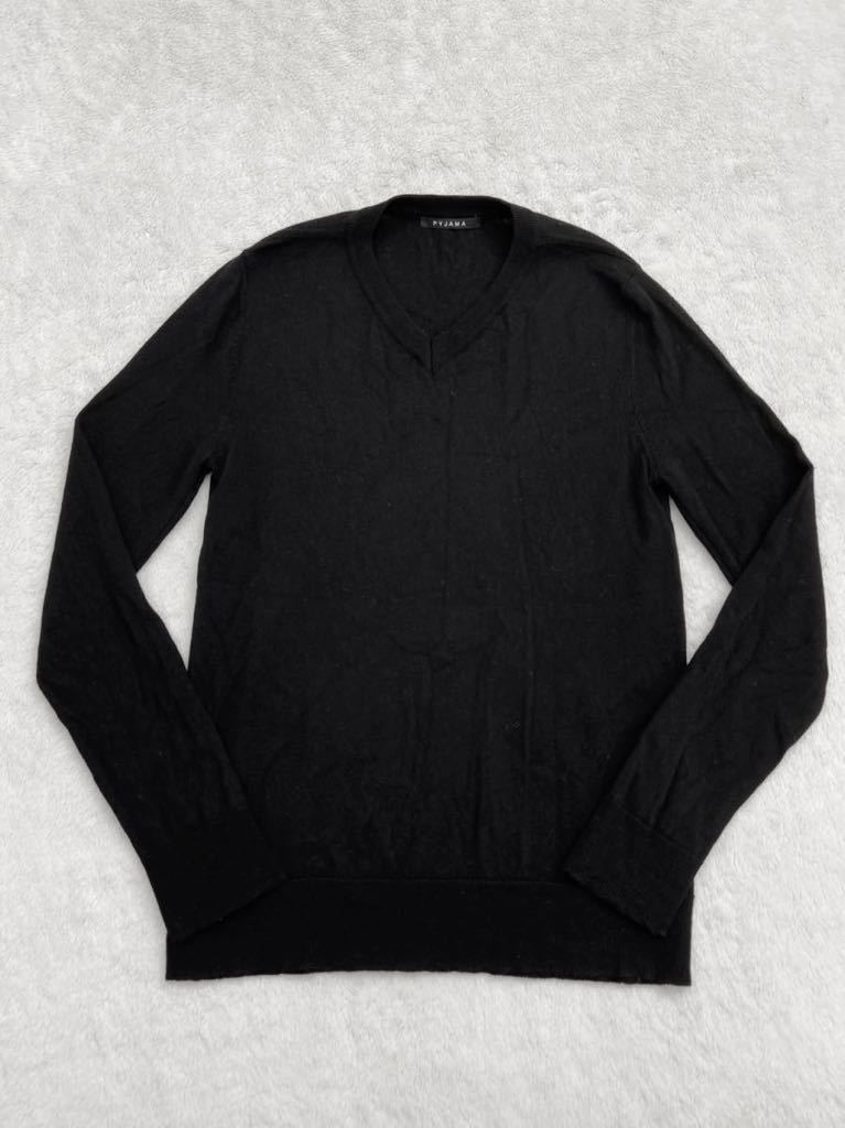 PYJAMA sizeM ベルギー製ウールセーター ブラック Vネック パジャマ パジャマクロージング メンズ 黒 秋冬 美品