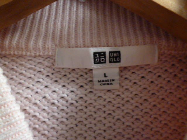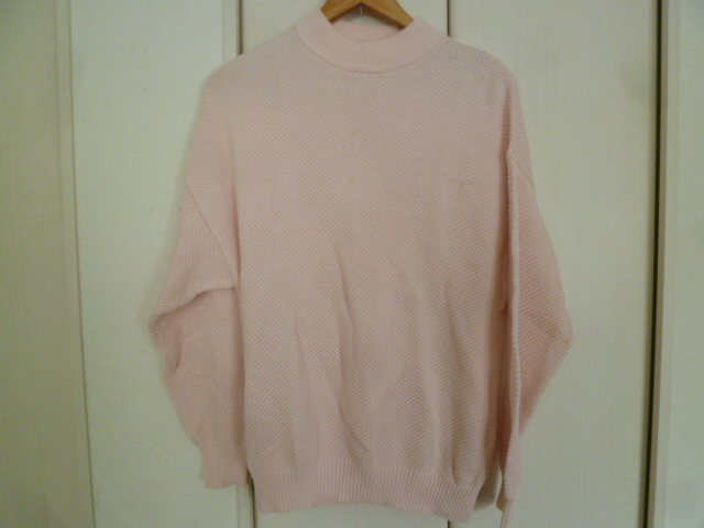 UNIQLO/ユニクロ○淡ピンクざっくり編みニットセーターL/シンプル長袖トップス○⑤ST1022