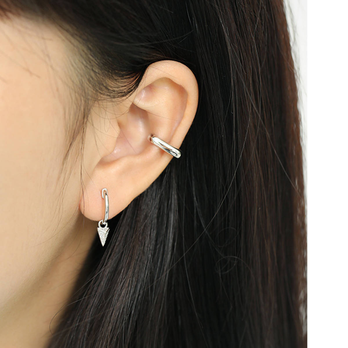 2個1Setシルバー925 ピアス カフス イヤリング 重ね付け ゴールド シンプル | |||