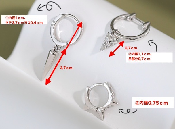 素材はシルバー925を使用ししっかりとした作りのピアス&カフス。 シルバ-925素材を使用でのこの価格はオススメです!! ゴールドカラーは SILVER925に18Kコーテイングを施しております。 ■コーディネートに合ったアクセント クラシカルなデザインからハードなデザインまでデイリーに落とし込んだデザインピアスシリーズ SILVER925特有の経年変化もお楽しみ頂けます。 親しい友人へのプレゼントにも最適。 性別を問わず着用して頂けるので重宝できるアイテムです。 シンプルデザインからインパクトある商品まで、いろいろ使い勝手がよくコーデを選ばず合わせやすく、 メンズ、レディース問わずユニセックスでの着用が可能。 いろいろなデザインが有り、色々な用途に使えます。 【素材】 シルバー925 【サイズ】 内径1,1cm 吊部分0,7cm | |||