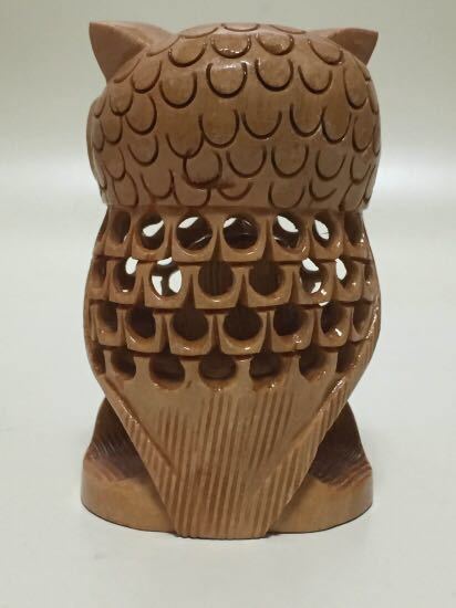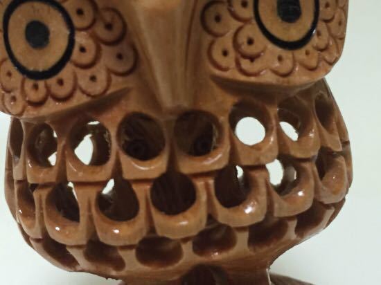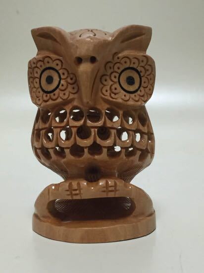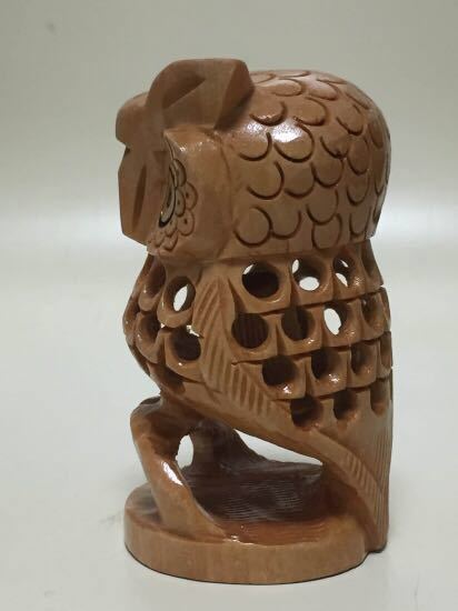 手彫りならではの、ちょっととぼけた感じの味のあるフクロウさん、置いておくだけで癒されそうです。