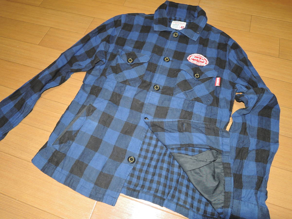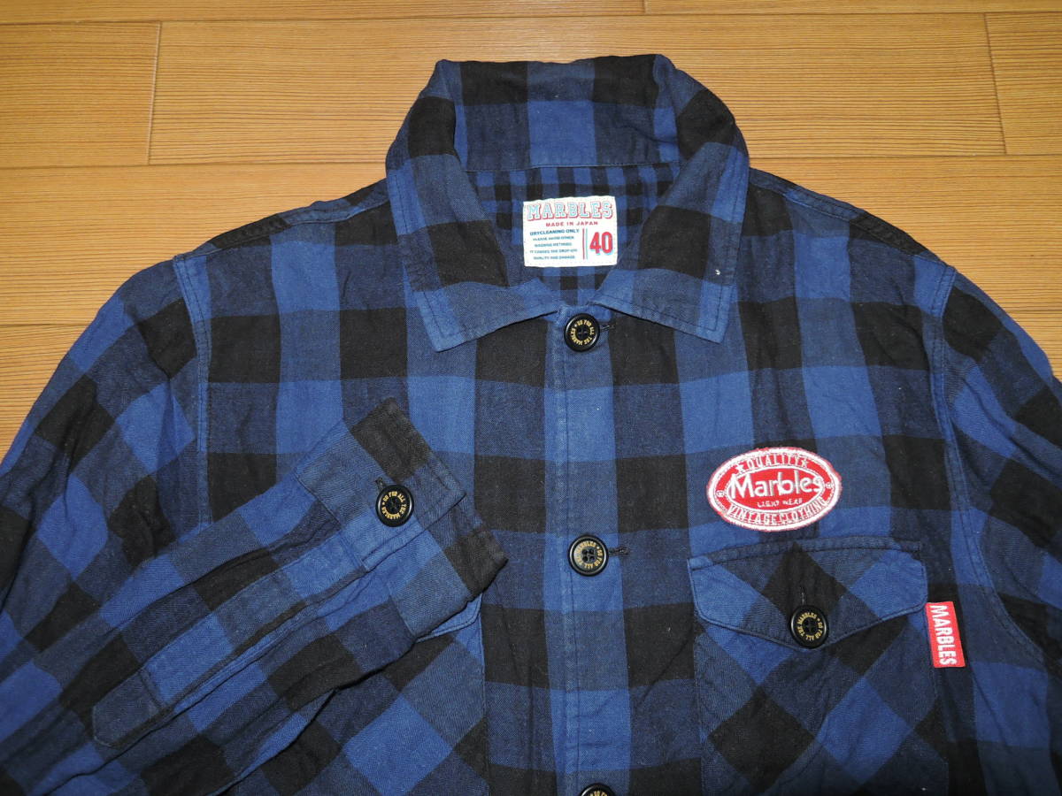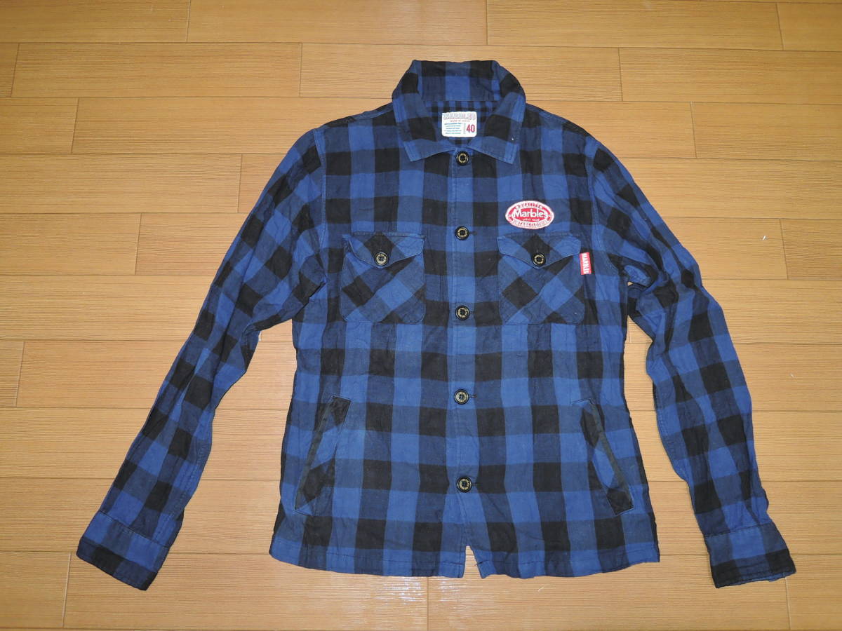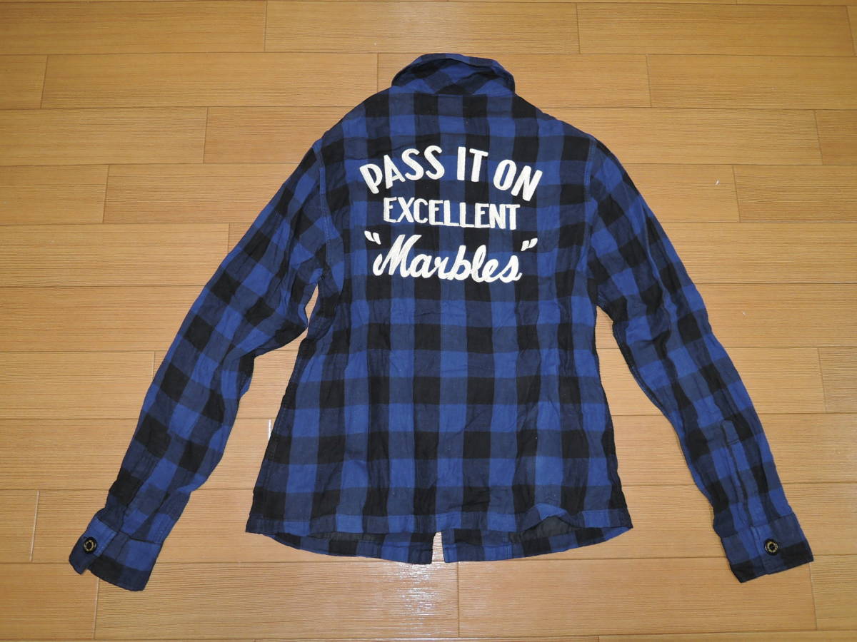 MARBLES マーブルズ 背ロゴ チェックシャツ M 青黒 刺繍 ステッチ / 長袖シャツ